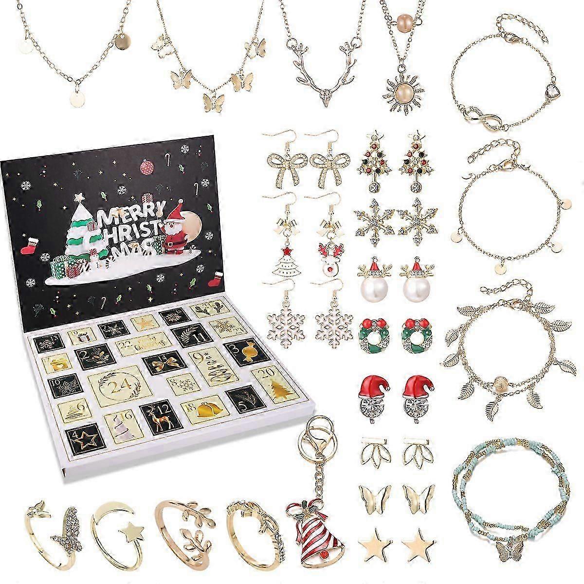 an And American New Christmas Advent 24 Grid Calendar Blind Box Diy Fashion Ear Stud And Ring Bracelet And Necklace Set Women