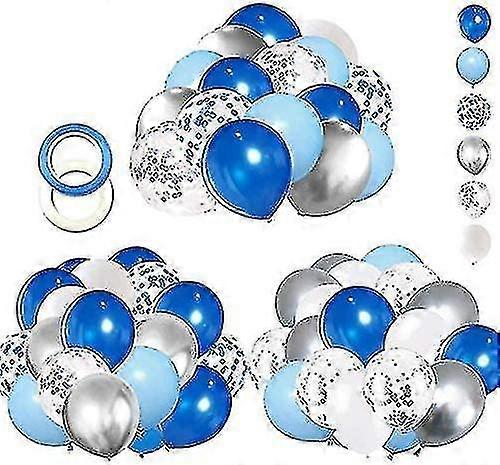 Other Garden Decor 62pcs Blue Silver White Confetti Balloons Kit, 30cm White Royal Blue Metallic Balloons Silver Balloons Blue Sliver Confetti Balloon