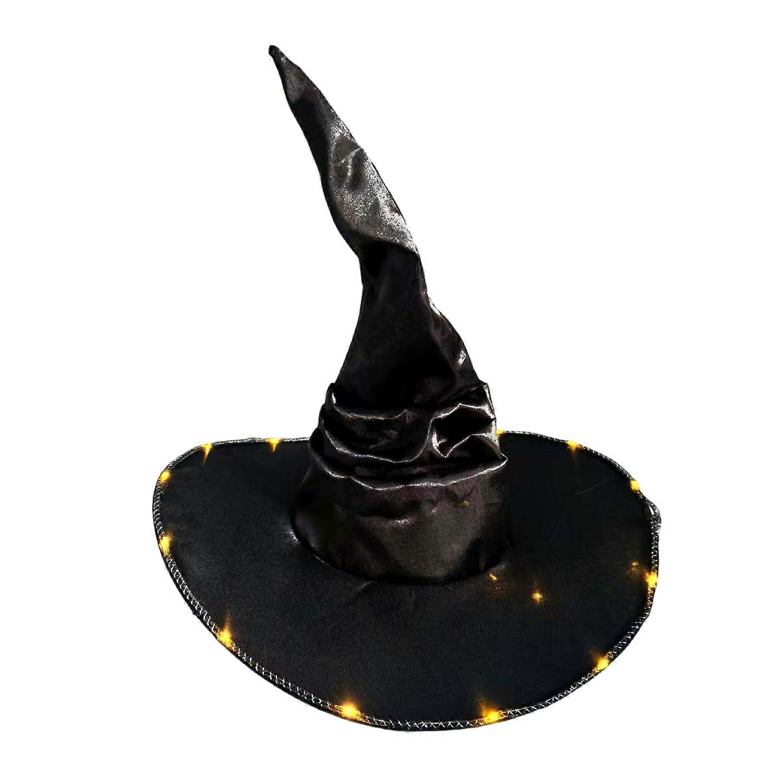 Wide Brim Witches Hat Led Light Up Witch Caps Large Black Witches Hat Halloween Cosplay Costume for Women Men Gifts Black