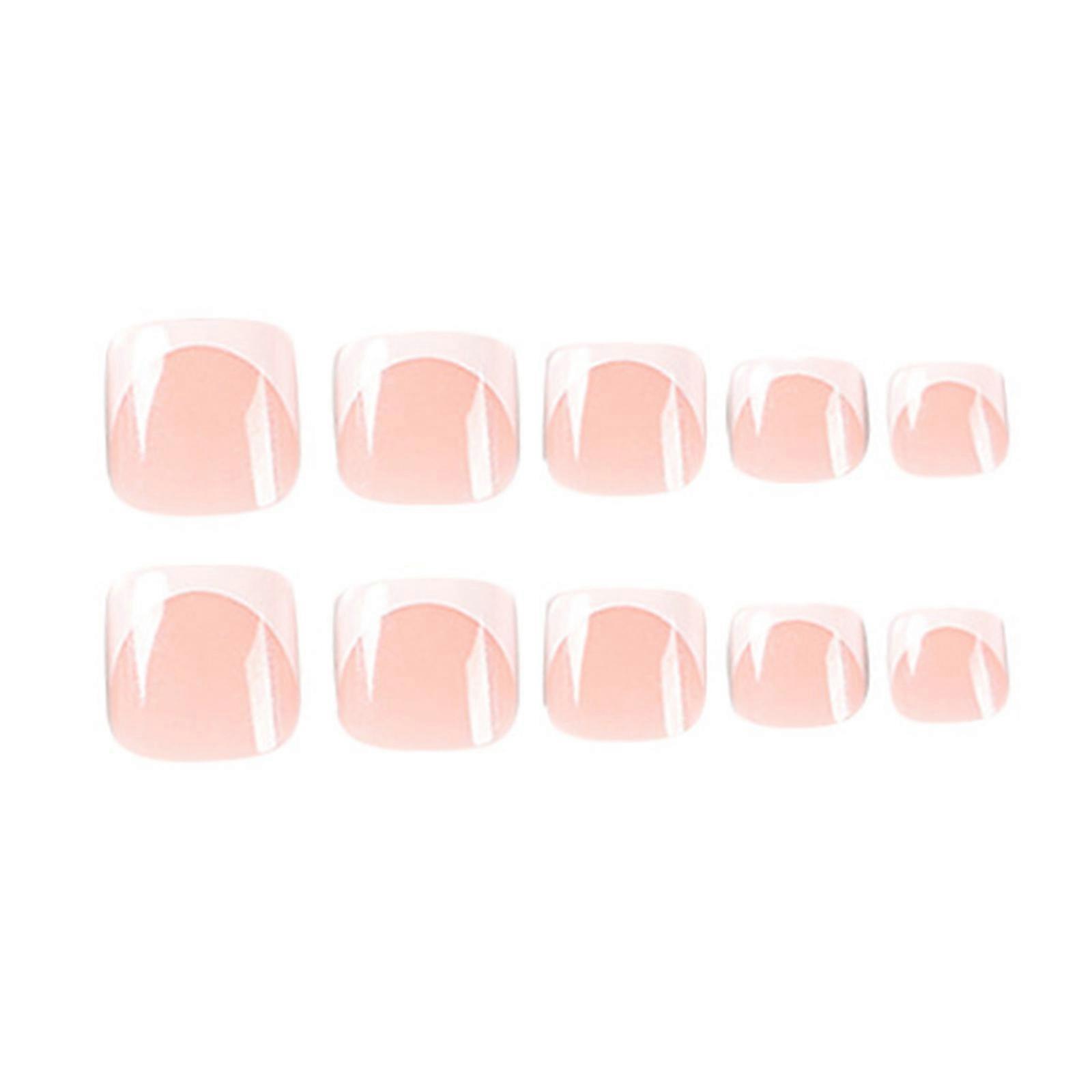 Toe Nails Set French Press on Foot Tips Fake Nail Tips Rhinestones Summer Reusable Artificial False Stick-on Nails Art