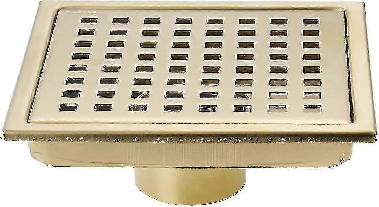 New Square Shower Floor Drain in Brushed Gold, 6 Inch Size with Removable Cover, Suitable for SUS304 Stainless Steel Design