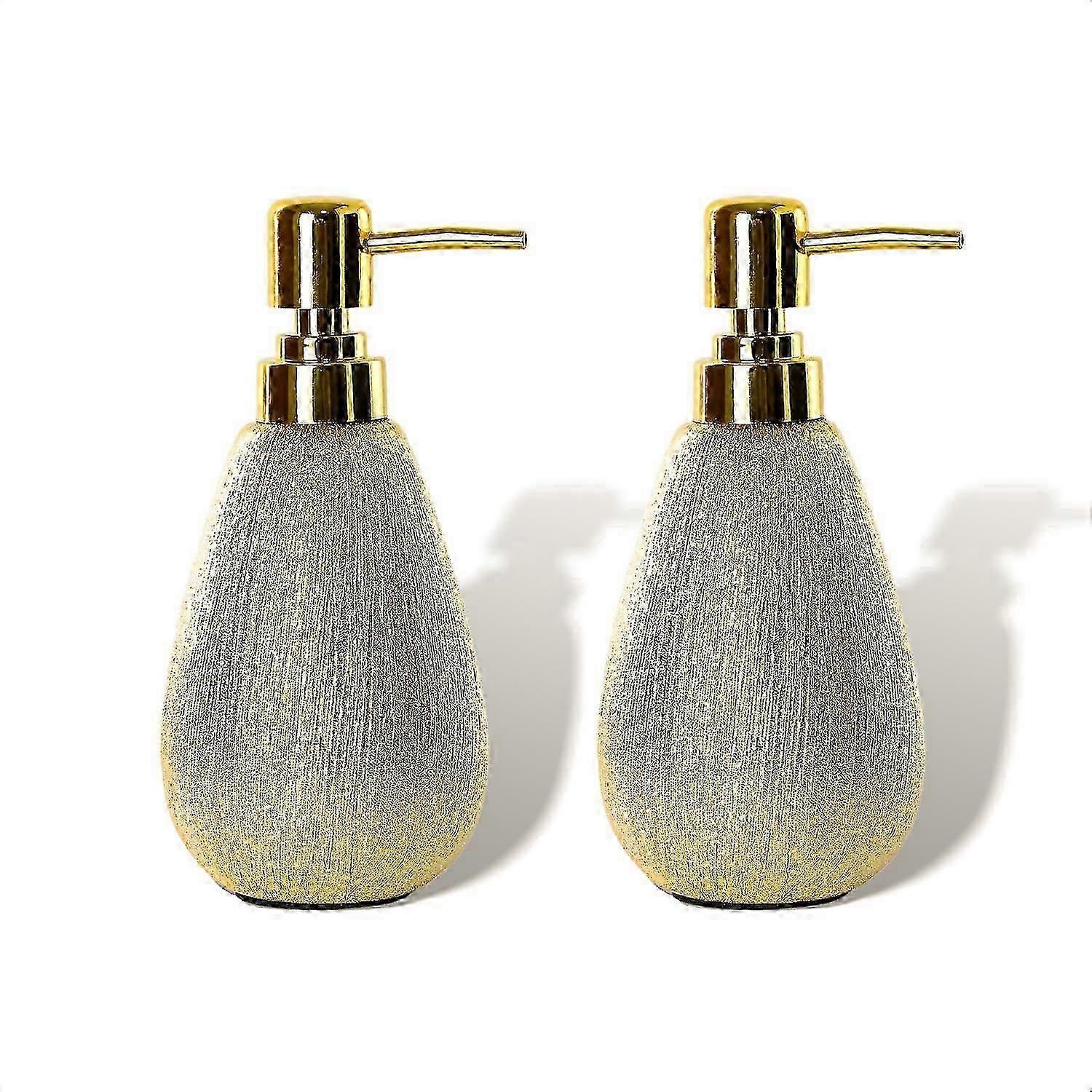 Brushed Gold Ceramic Soap Dispenser Set of 2, 11 Oz Textured Hand Soap Dispenser with Golden Pump for Kitchen or Bathroom