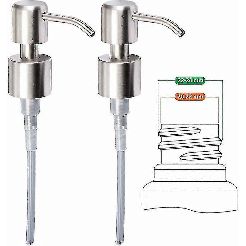 Brushed Stainless Steel Soap Dispenser Pump - 2 Pack Replacement Set for Liquid Soap Bottles