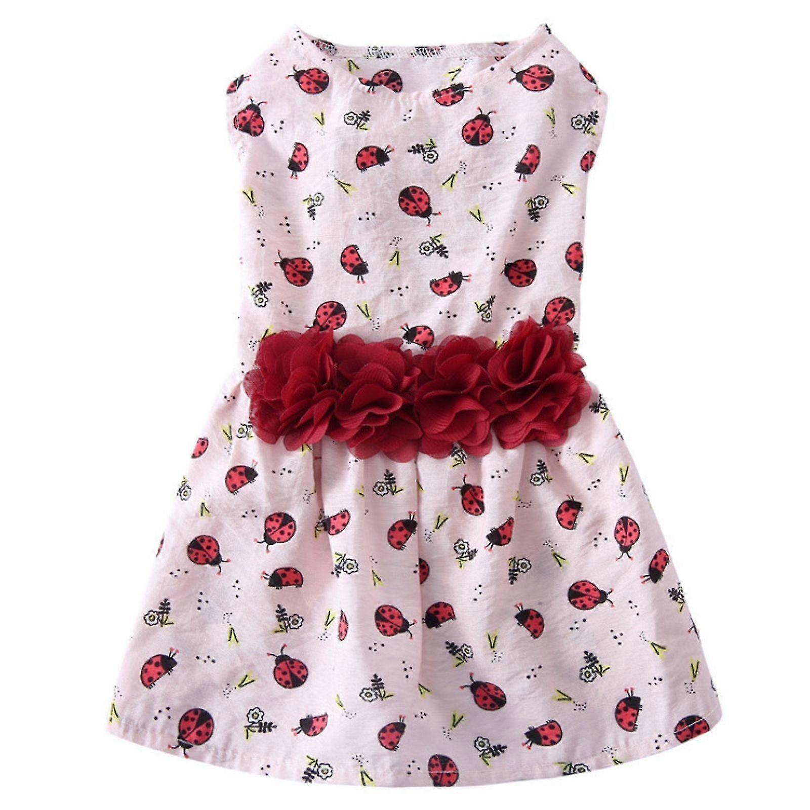 Ladybug Print Pink Pet Dog Princess Dress for Pet Dog Cat