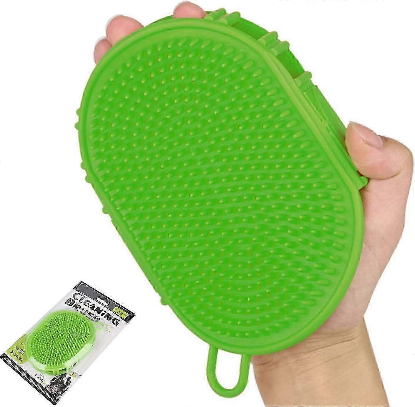 Soothing Massage Rubber Bristle Curry Comb, Easy Washable Bath Mitt for Dogs and Cats, Green