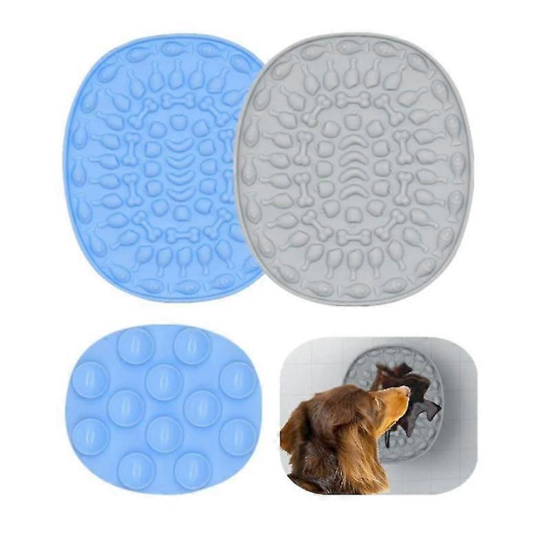 Package includes: 2 x Durable Silicone Dog Lick Pad 1.REDUCES BOREDOM, ANXIETY, AND DESTRUCTIVE BEHAVIOR- Dog Lick Pad helps to relieve pet anxiety during bathing or grooming time. Simply spread peanut butter or your pet approved treats on the Slow Feeder Dog Mat and stick to a tub, counter, or any smooth surface.^ 2. HIGH QUALITY DURABLE SILICONE - Dog lick pad is made of 100% Food-Grade Silicone and BPA free,strong flexibility, never deformed,Slow Feeder Dog Mat is also dishwasher safe.^ 3. EASY TO USE - Just need to spread peanut butter or your pet's favorite food on the lick and stick the lick mat to any flat surface like a wall, floor, tub and counter.This Slow Feeder Dog Mat can also be used as a fun alternative to a slow feed dog bowl anytime, not just during bath/grooming time.^ 4. EASY TO CLEAN - Dishwasher or hot soapy water can easily clean up the residual peanut butter.^ 5.Unique design - The dog lick mat with suction cups prevents it from falling. The leak area has a raised edge to prevent food from spreading and to preserve your bathroom, shower or counter cleaner.