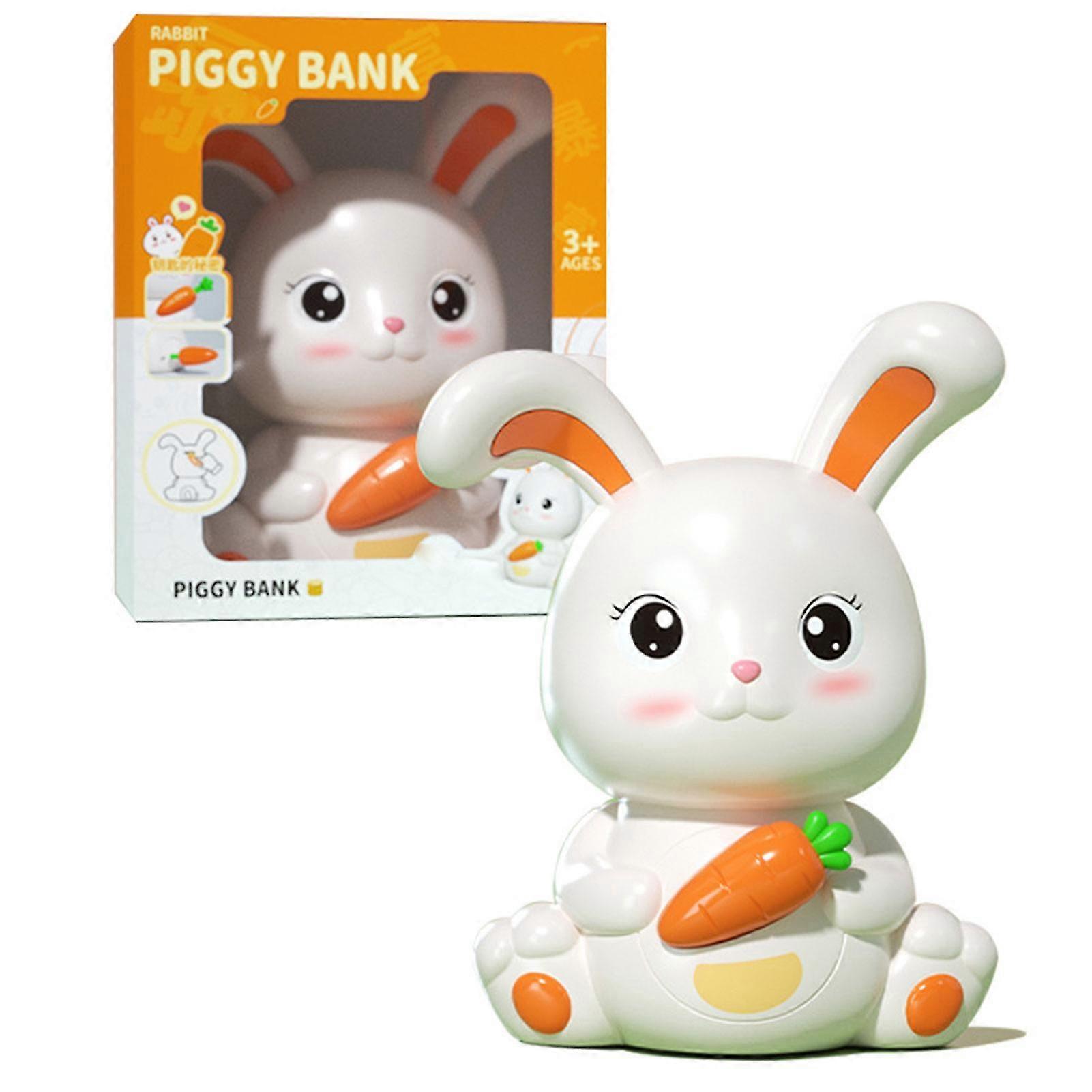 1.My Firsr Bunny Bank: A starter bank for young toddlers start the saving process by adding cash to this cute rabbit piggy bank. The rabbit money box looks cute and attractive kids will love placing money in this adorable coin bank friend and watching their savings grow which also helps develop kids' good habits of saving money.2.Unbreakable Money Bank: Made by non-toxic thick plastic material this cute bunny coin bank is very sturdy and toddler tough kids might drop it many times without any damage.