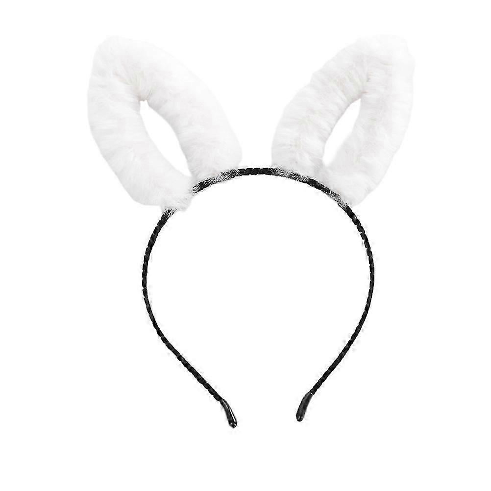 Plush Rabbit Ear Headband Decorative Hair Party Hair Accessories for Woman Girl Lady (White)