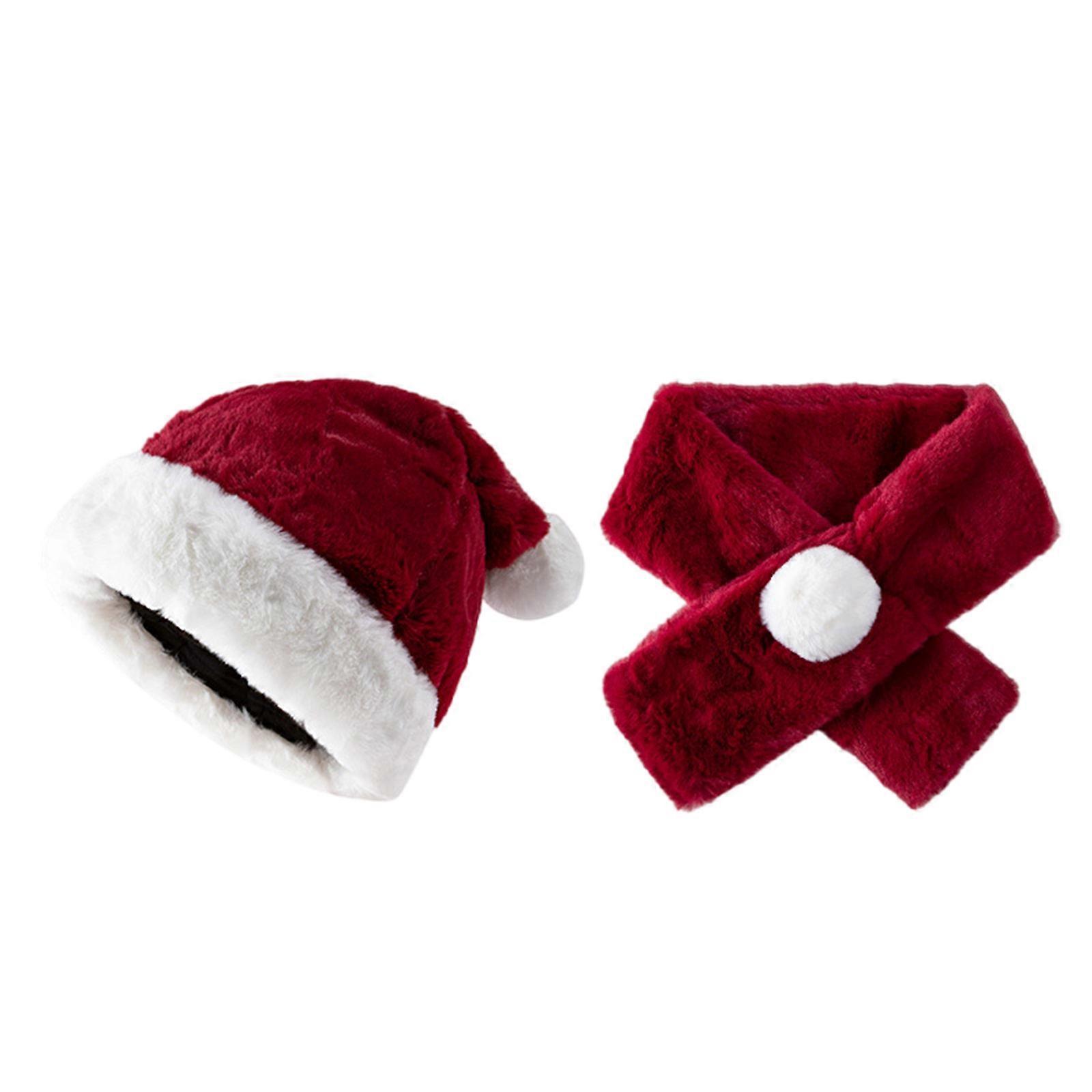 Plush Christmas Scarf Santa Hat with White Brim for Holiday Parties Giving Love New Year Party Cosplay Accessories