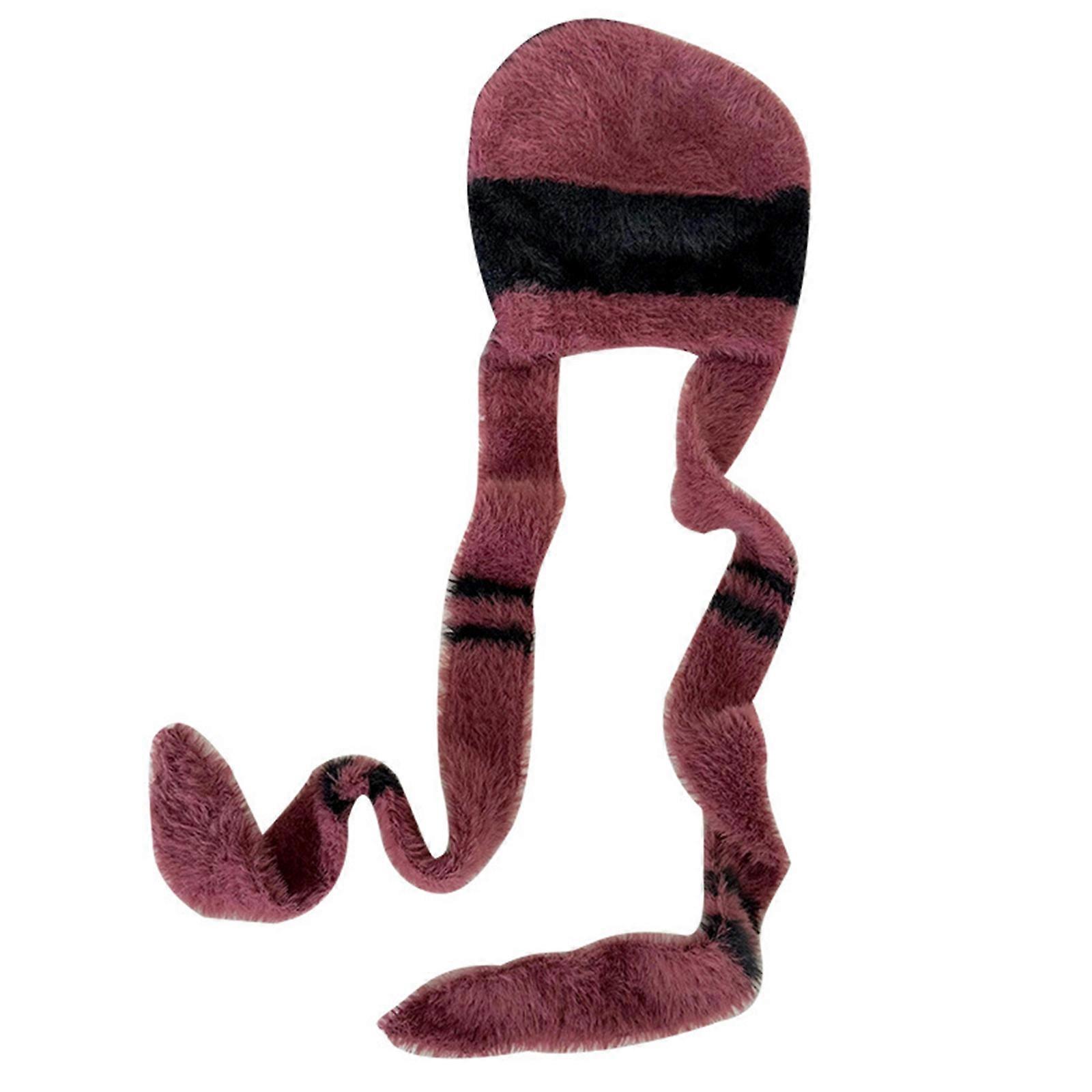 Plush Stripe Pattern Beanie Adult Elastic Hat Winter Warmer Knitted Hat Cold Winter Presents for Students Teenagers Dark plum