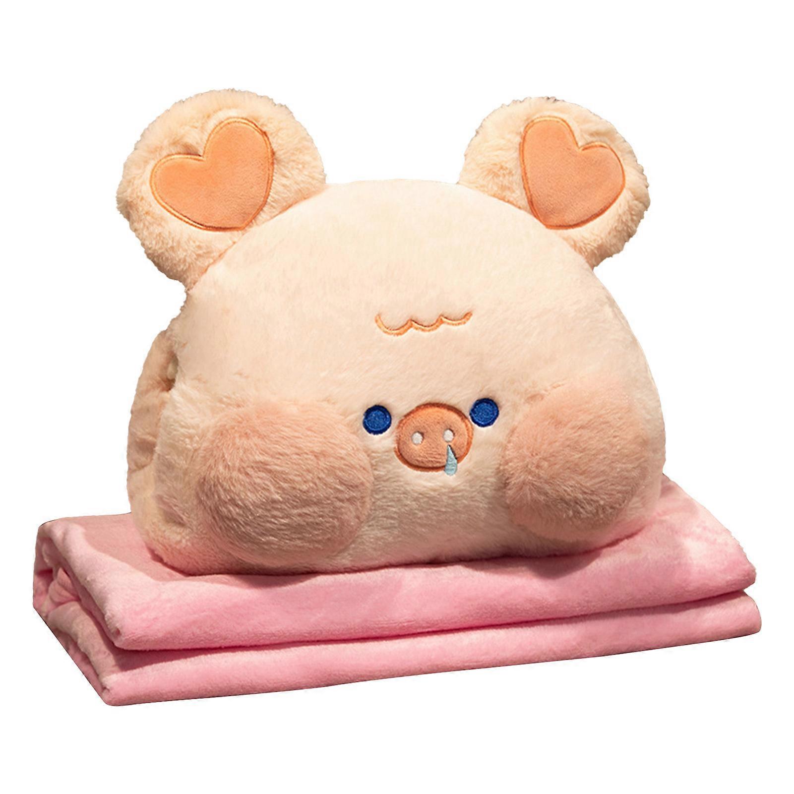 Stuffed Animals Travel Blanket Pillow Set Soft Plush Hugging Pillow Cute Plush Toy with Hand Warmer Design for Travel Home Office Pig