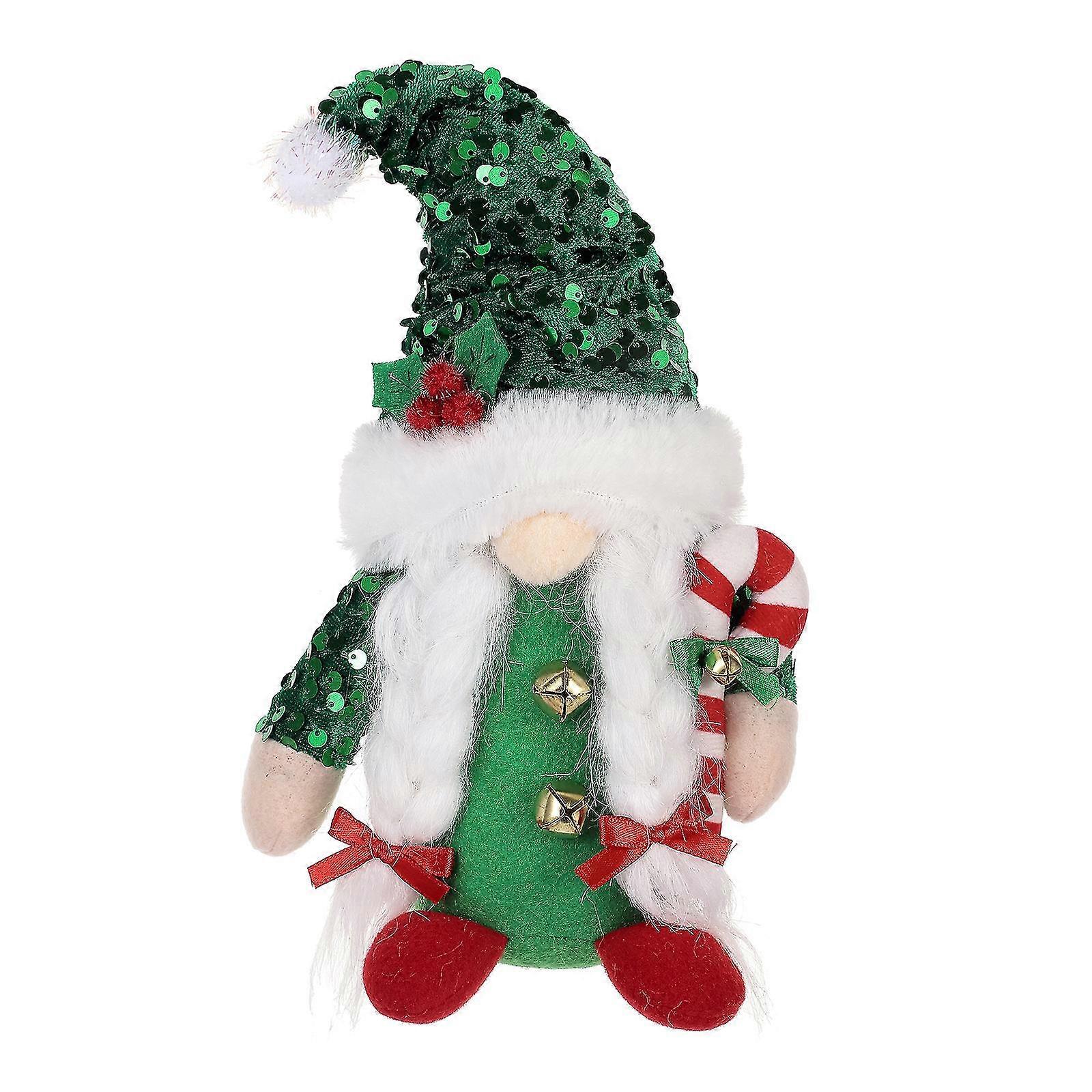 Plush Knitted Santa Claus Doll Elf Decoration Sequin Cap New Year Gifts Handmade Swedish For Home Christmas Gnome,green