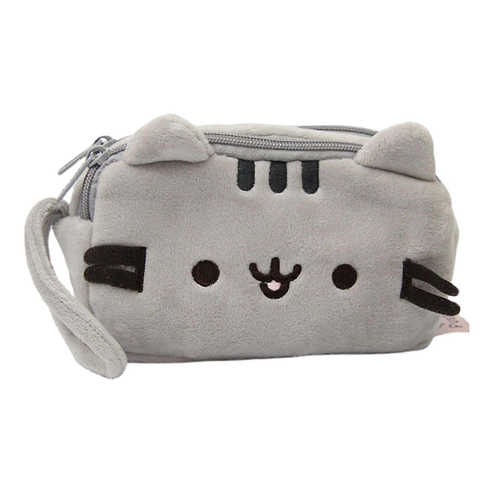 Plush Pencil Case Portable Cartoon Cat Storage Pouch Zipper Closure Pen Case