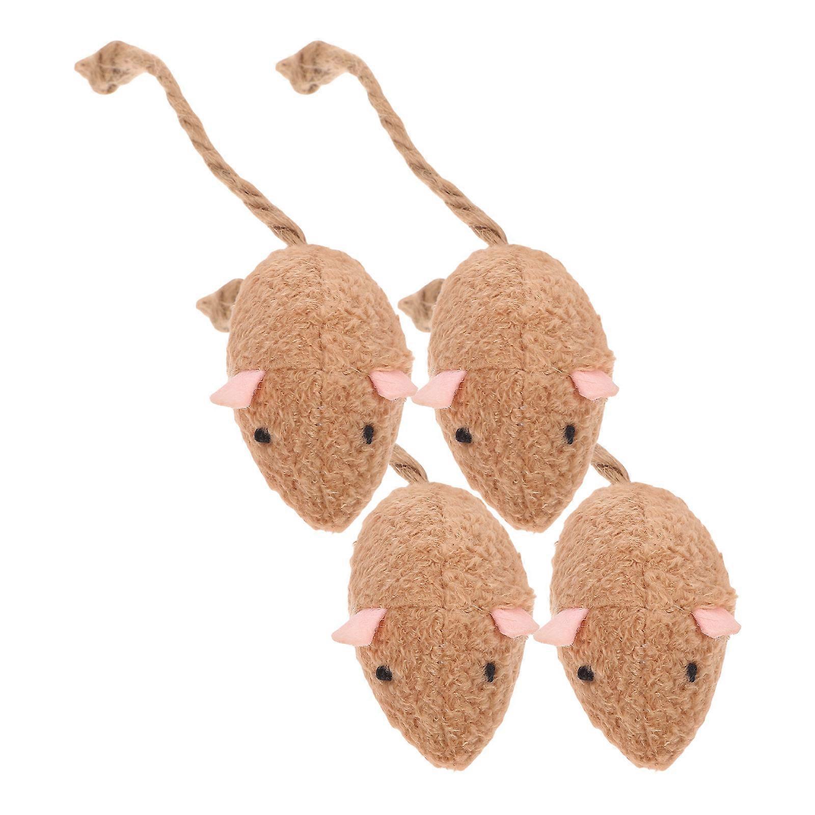 Plush Mouse Cat Toy Interactive Entertainment Indoor Cats Khaki Color 4Pcs