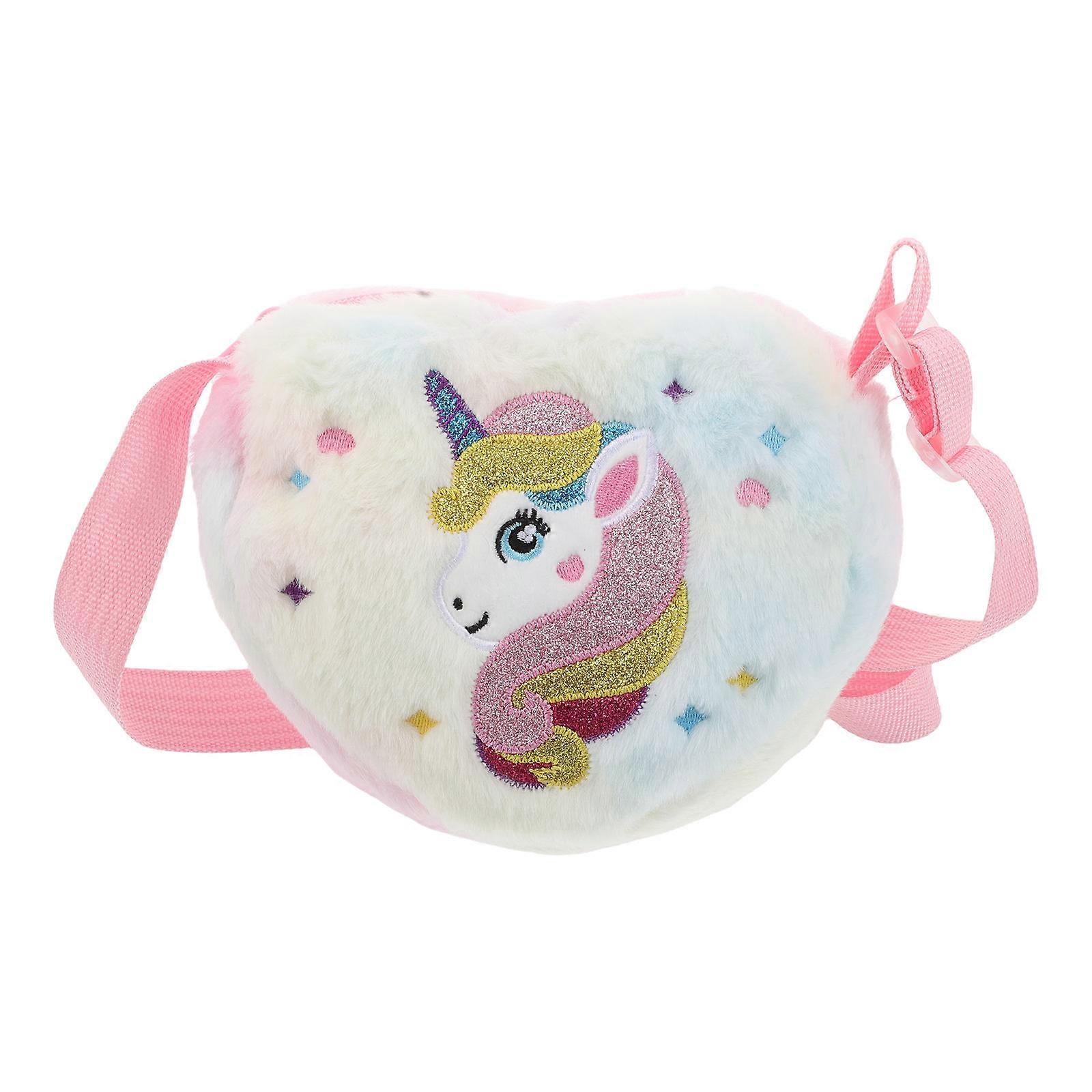 Plush Rainbow Shoulder Bag Cute Heart Unicorn Crossbody Bag For Kids Everyday Use Multi Color 18.00X13.00X5.00CM 1Pcs