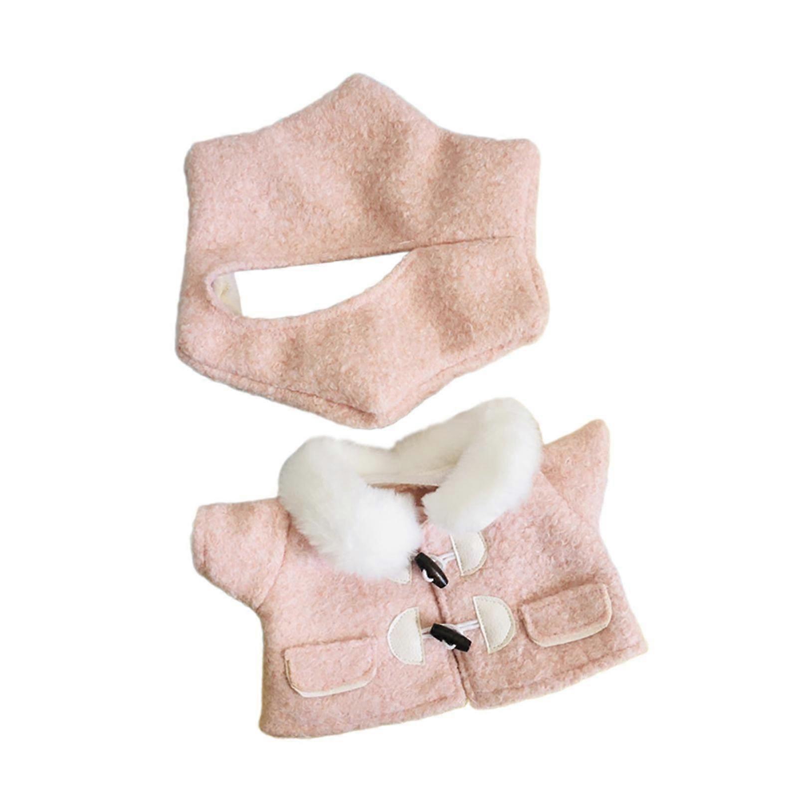 Plush Doll Coat and Hat for Little Girls DIY Clothing Dress up for 15'' Doll pink