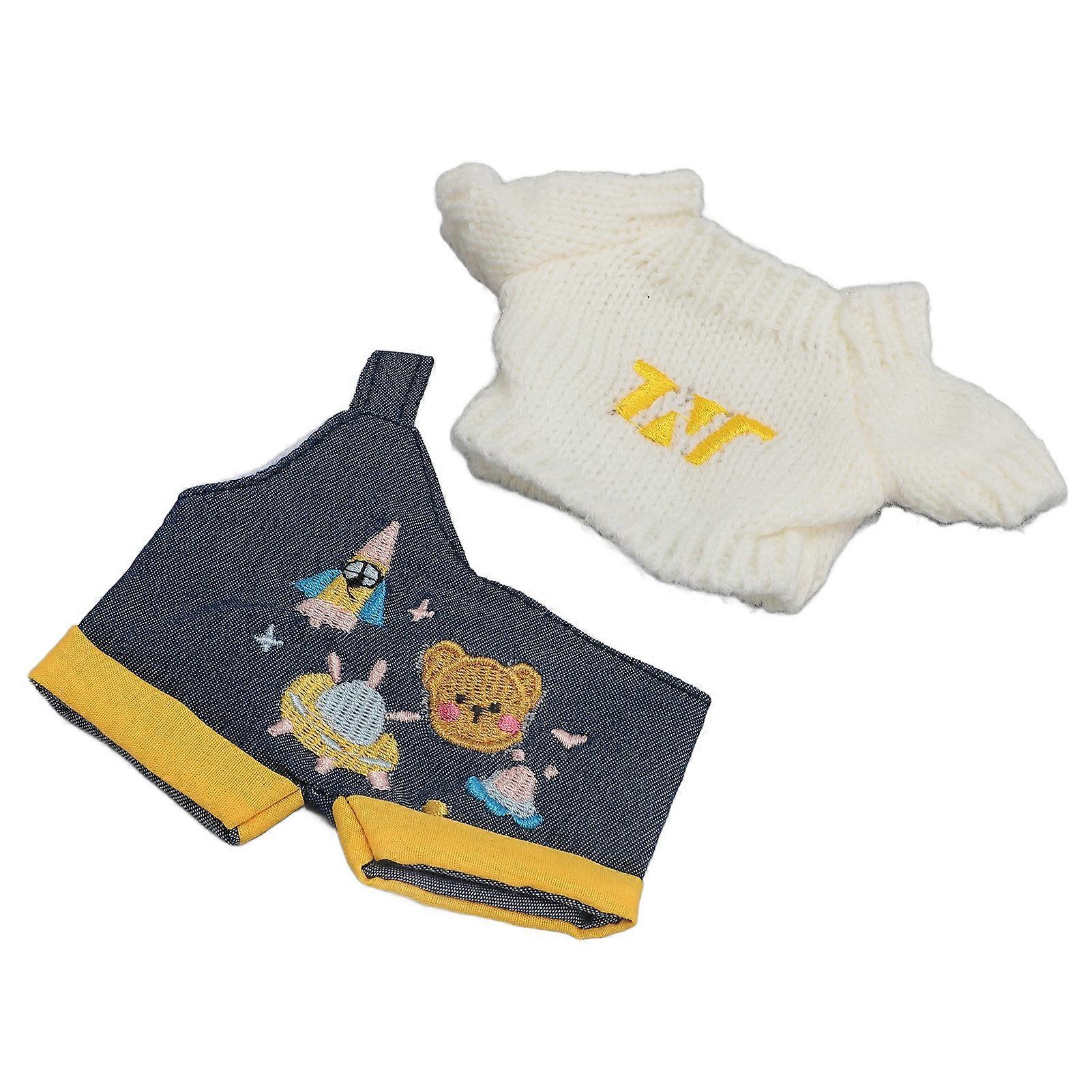 Plush Doll Clothes 20cm Bear Overalls Sweater Kpop Clothing Accessories Cotton Fabric White