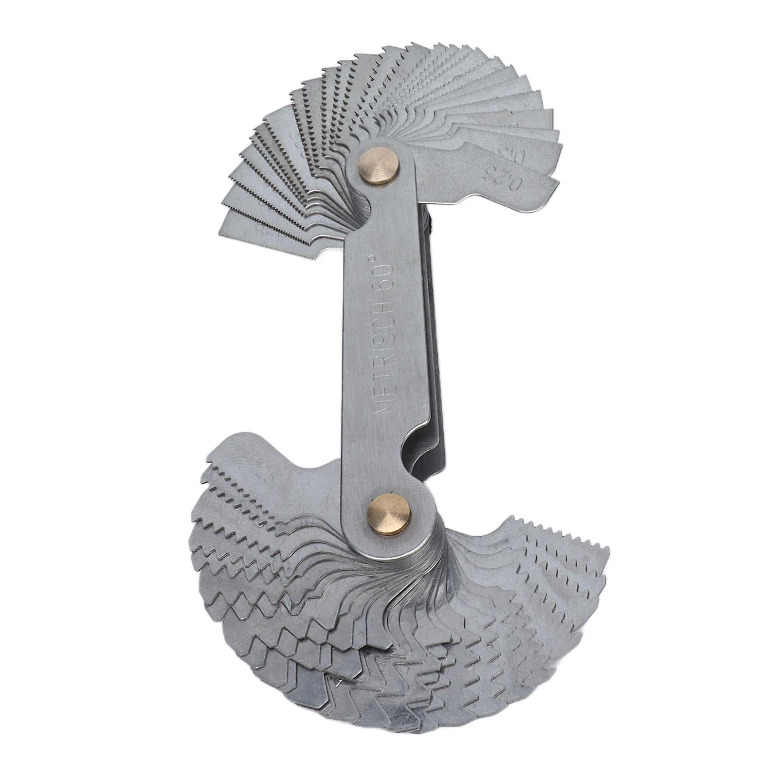 Thread Pitch Gauge 58-Blade Silver Stainless Steel Metric Tool