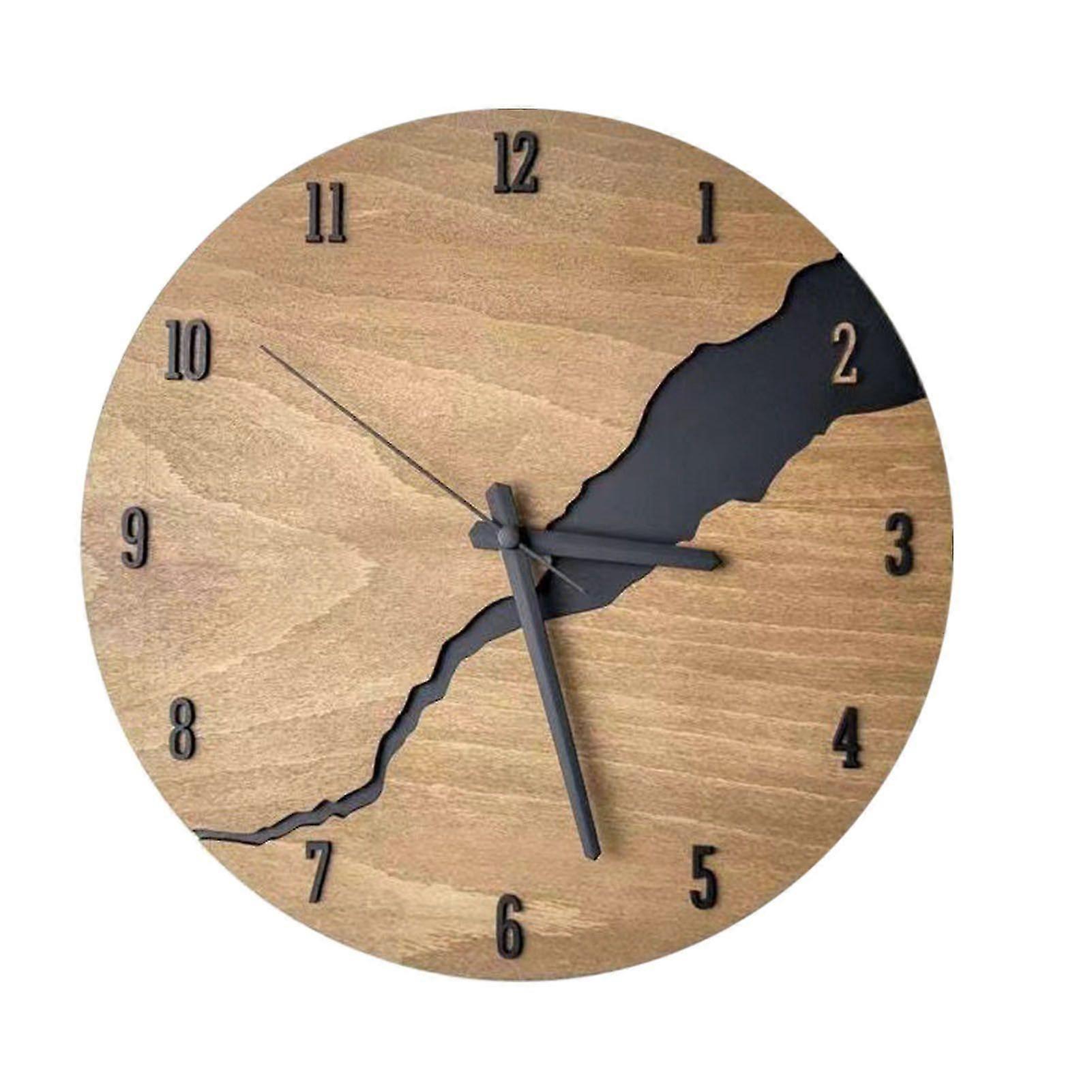 Cracked Wooden Wall Clock Round Silent Vintage Style Large Wall Clock Decor for Home Living Room Office