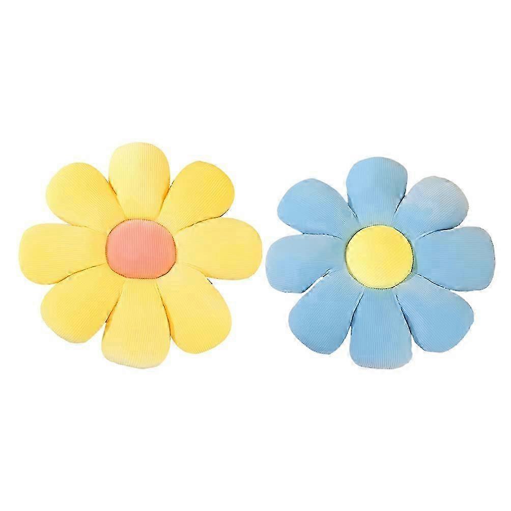 Sunflower Plush Pillows - Flower Shaped Seating Cushion, Sunflower Pillow Soft Dining Garden Chair Cushion 16Inch (Blue Yellow) 2Pcs