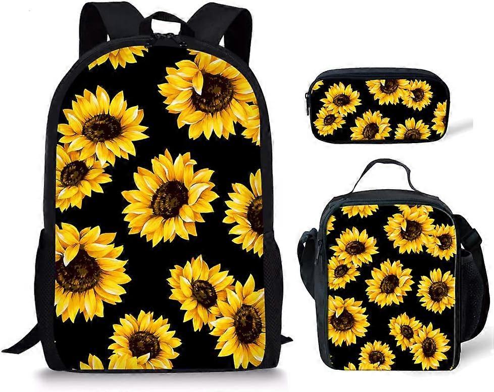 Sunflower School Bags Primary Schoolbag Book Bag with Insulated Thermal Lunch Box Pencil Case Set,3 in 1