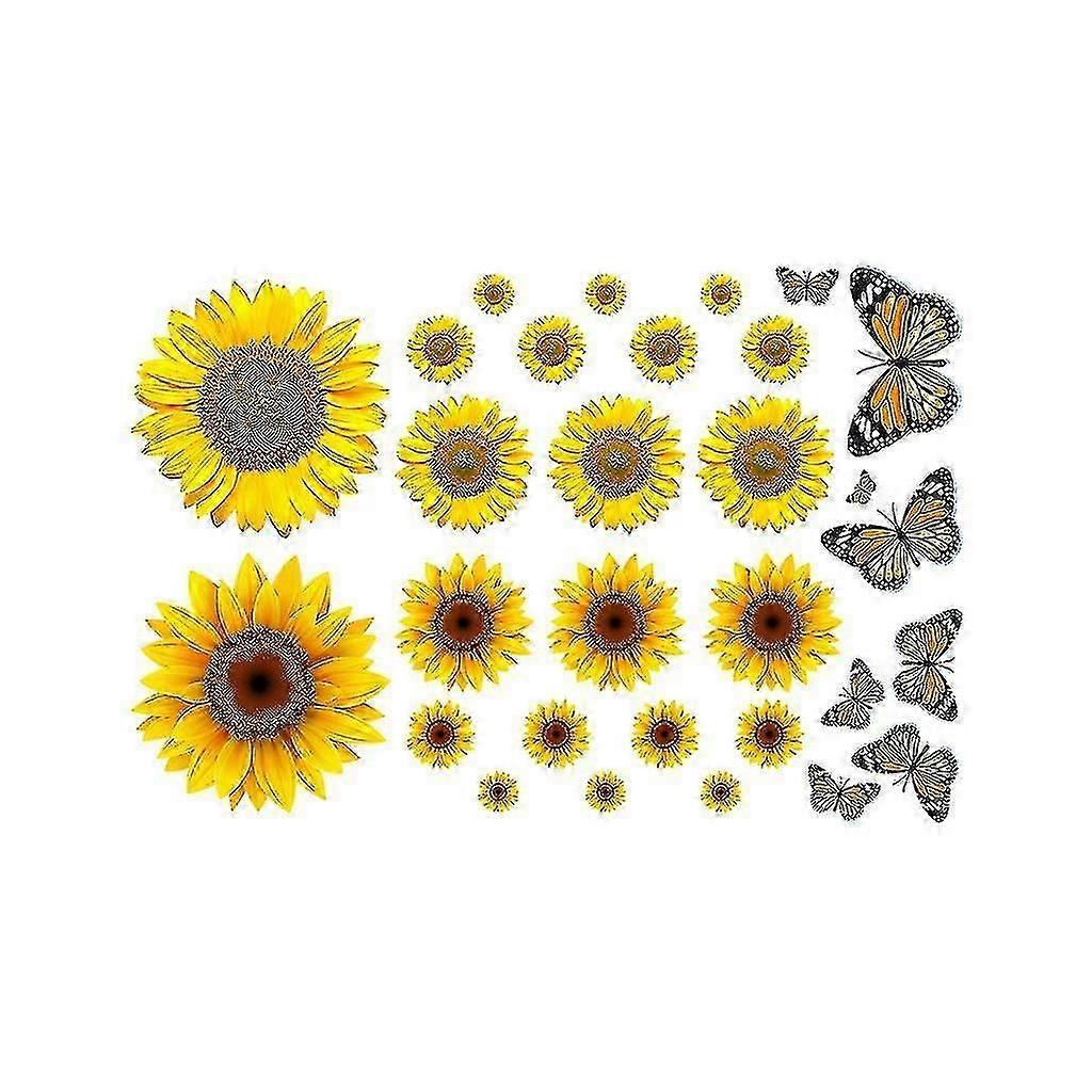 Sunflower Wall Decals Removable Yellow Flower Decals Waterproof 3d Flower Butterfly Wall Decals Diy Decorate For Kids, Baby Bedrooms, Living Rooms, Ba