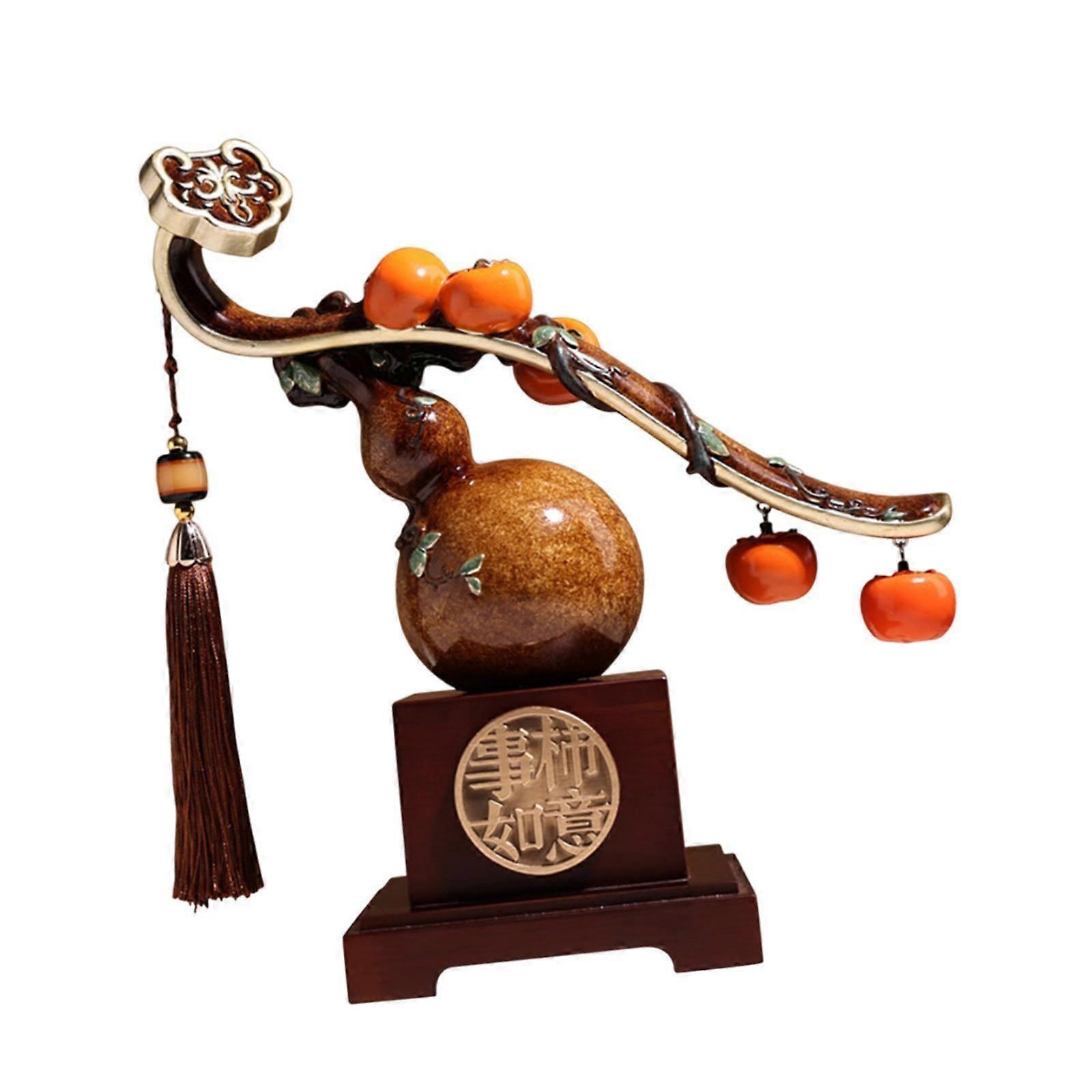 Gourd Figurine Blessing Sculpture Shop Festival Lucky Persimmon Resin Statue Brown