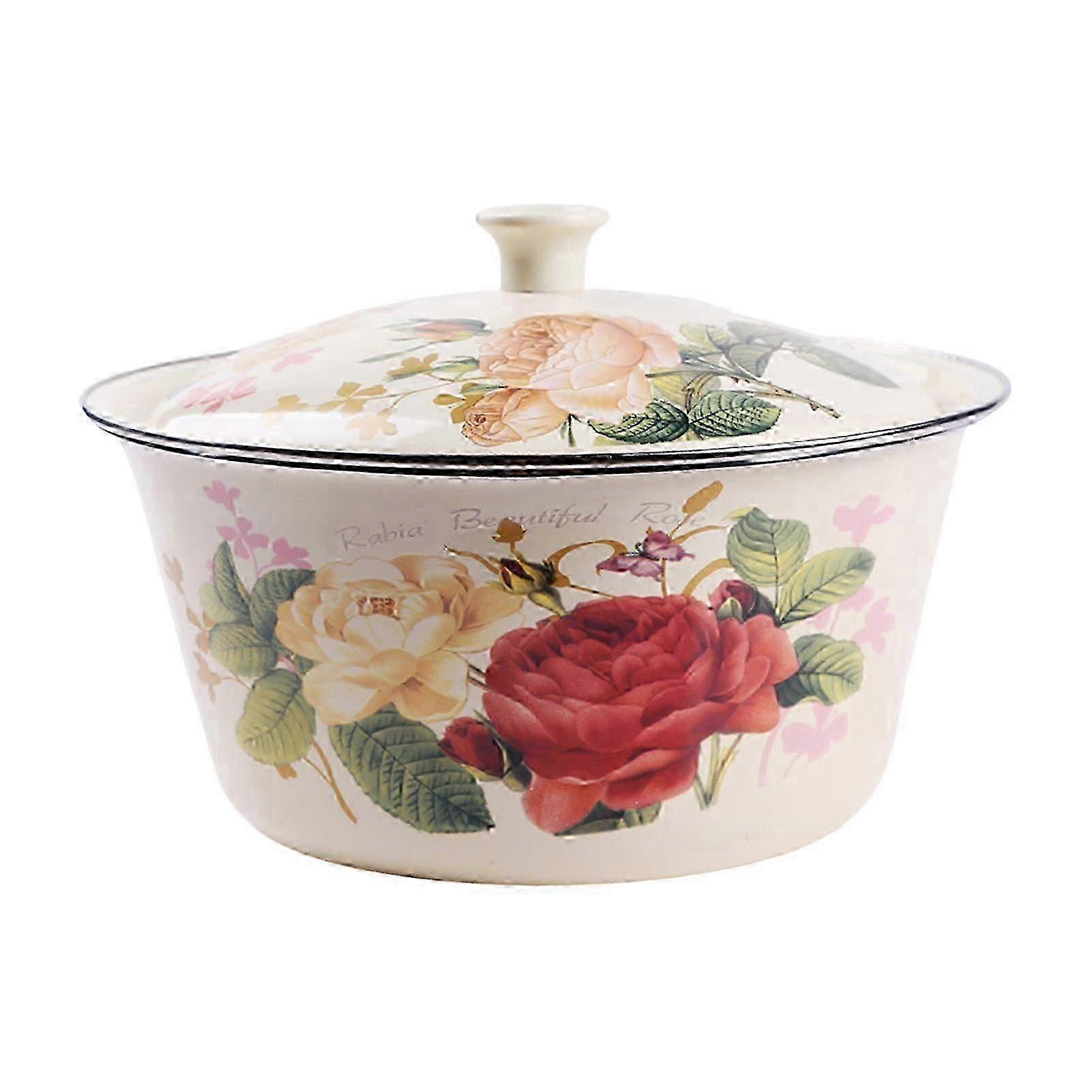 Household Enamel Basin with Lid Retro Flower Printed Enamel Bowl for Restaurants and Hotel