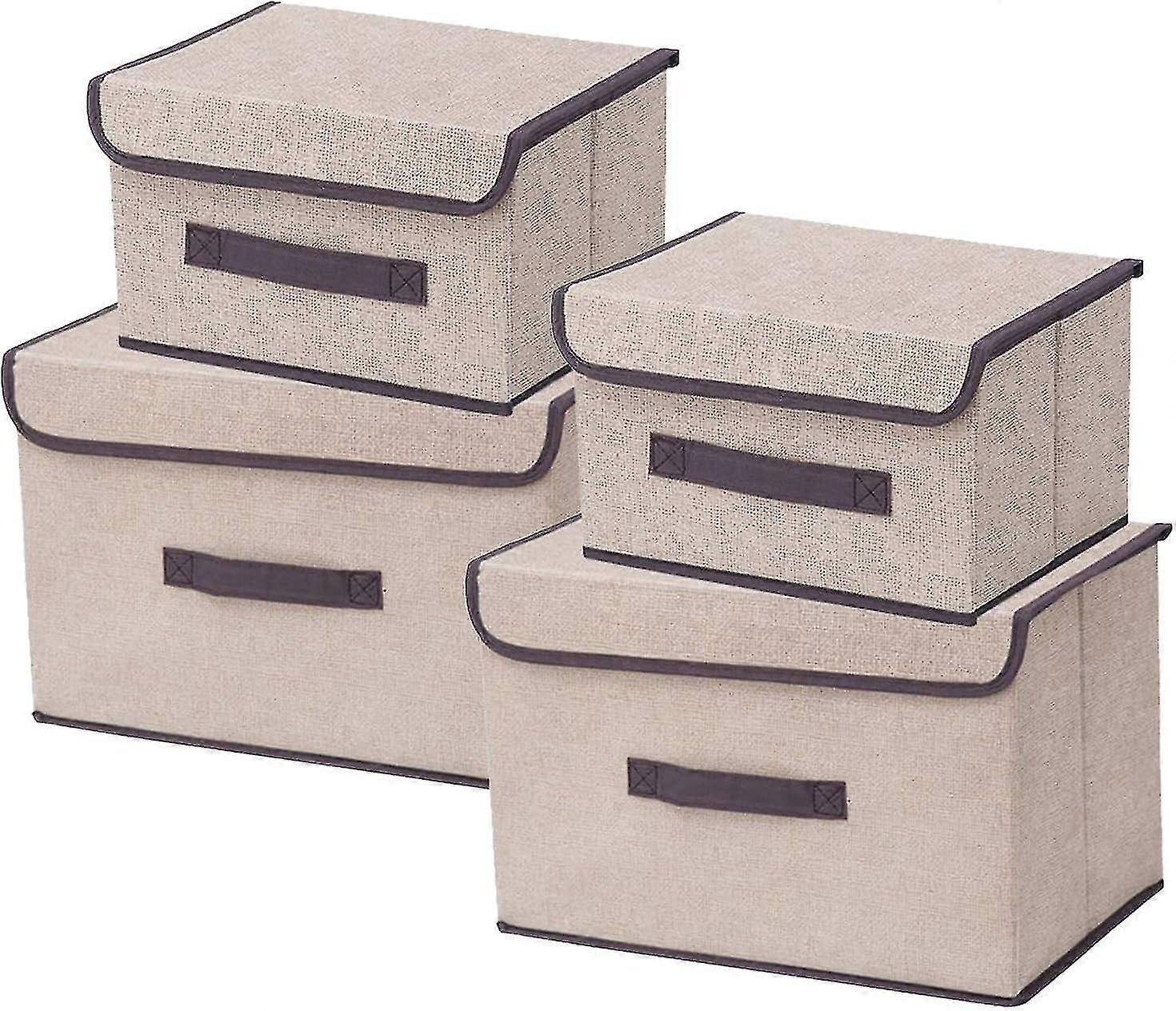 Collapsible Fabric Storage Boxes With Lids Set Of 4 Different Size Boxes For Clothing, Decoration, Underwear, Toys
