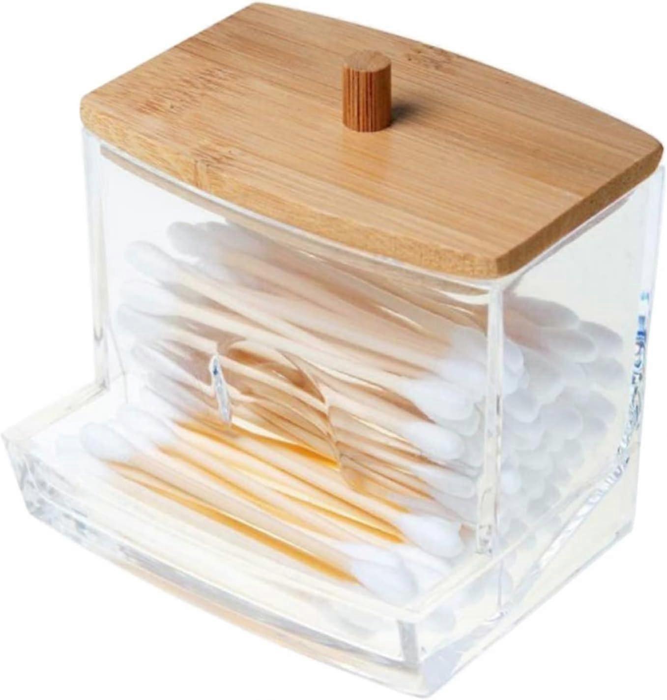 Cotton Pad Holder with Lid - Bamboo Lid - For Cotton Pads, Cotton Swabs or Jewelry