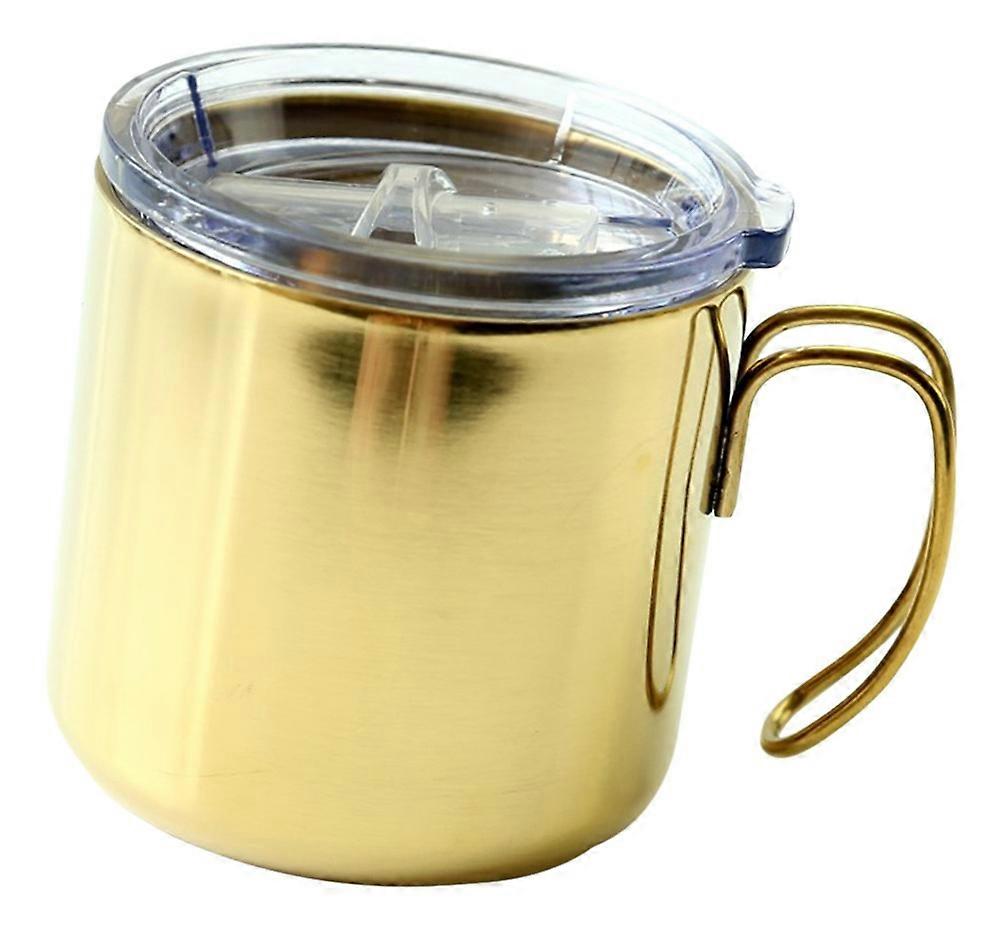 Stainless Steel Coffee Mug with Lid, Handy Mug Mug Beer Mug with Handle Lid Double Layer Mug (Color:Gold)(1pcs)