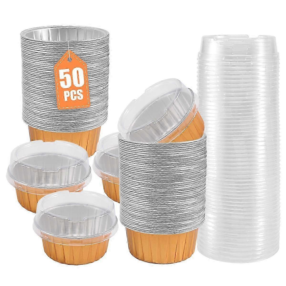 Dessert Cups with Lids, 50 Pack Gold Aluminum Foil Baking Cups Holders, Cupcake Bake Utility Rameki