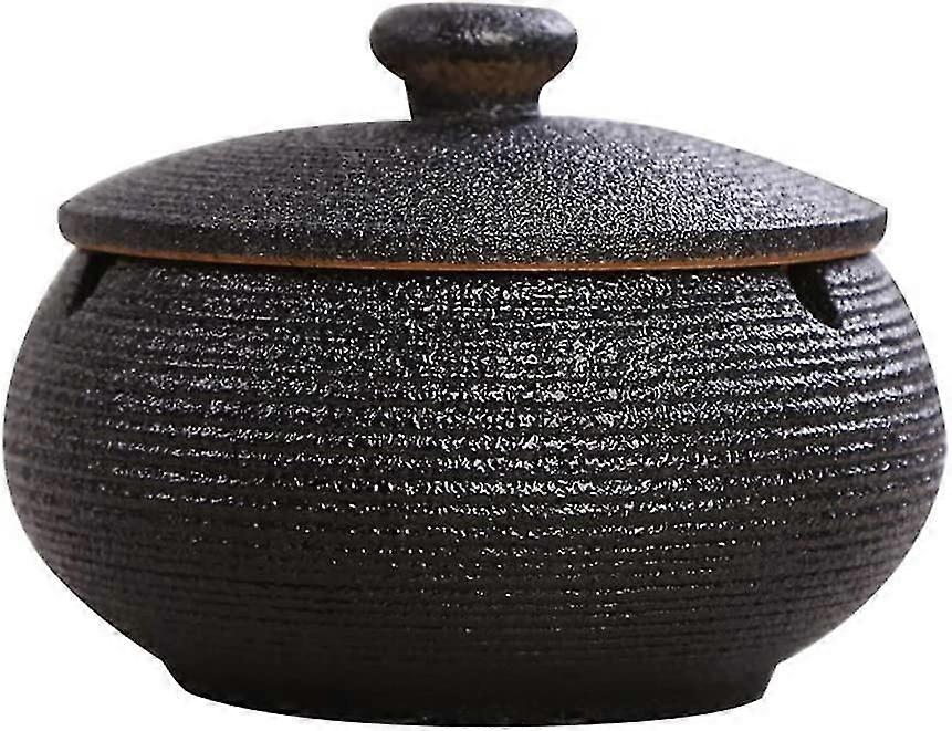 Black Ceramic Ashtray With Lid - Handmade Office Decoration Windproof Outdoor Ashtray