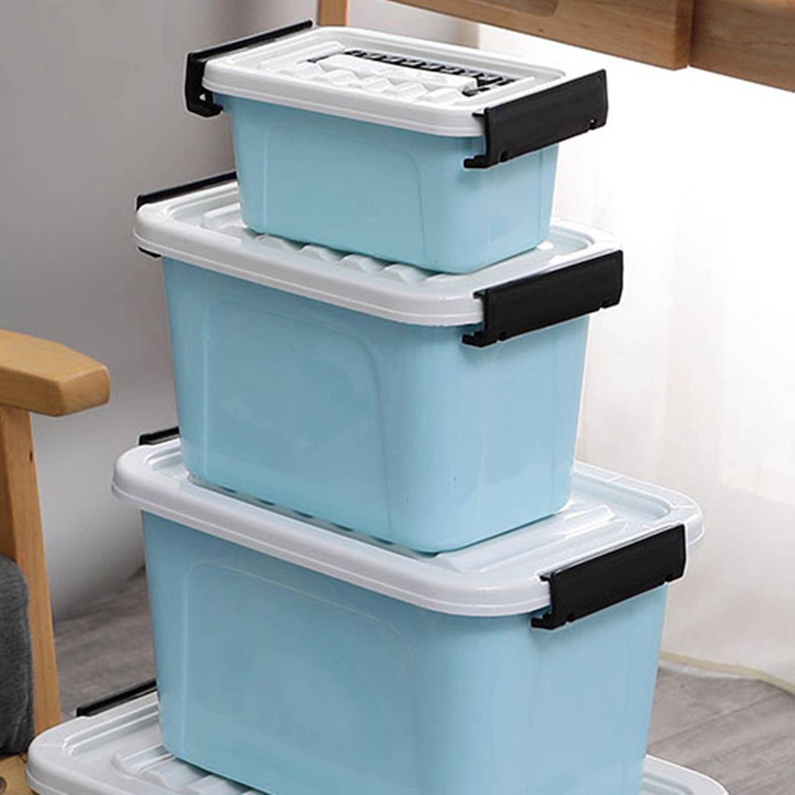 Portable Storage Box with Lid Plastic Organizer Box Bin Home Storage Container for Clothes Toys Blue