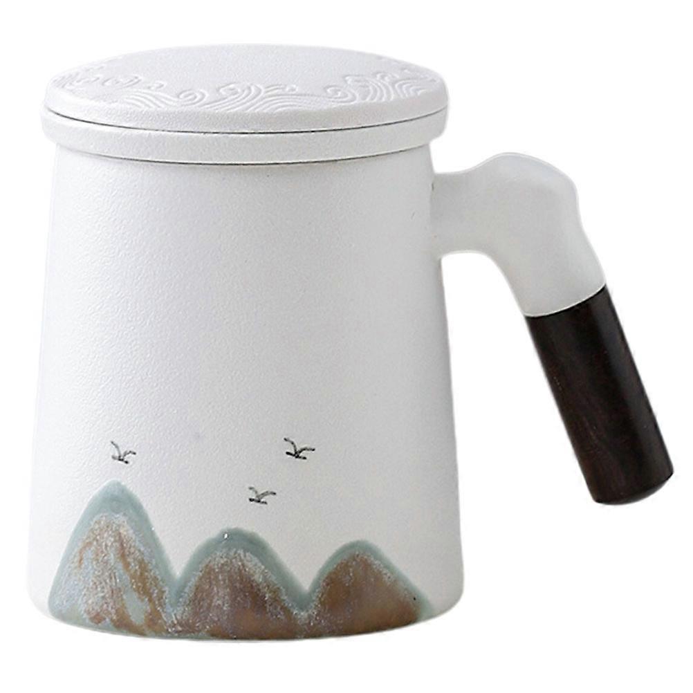 Mug With Lid Ceramic Tea Cup For Daily Tea Drinking White Round Shape Simple Design 1Pack