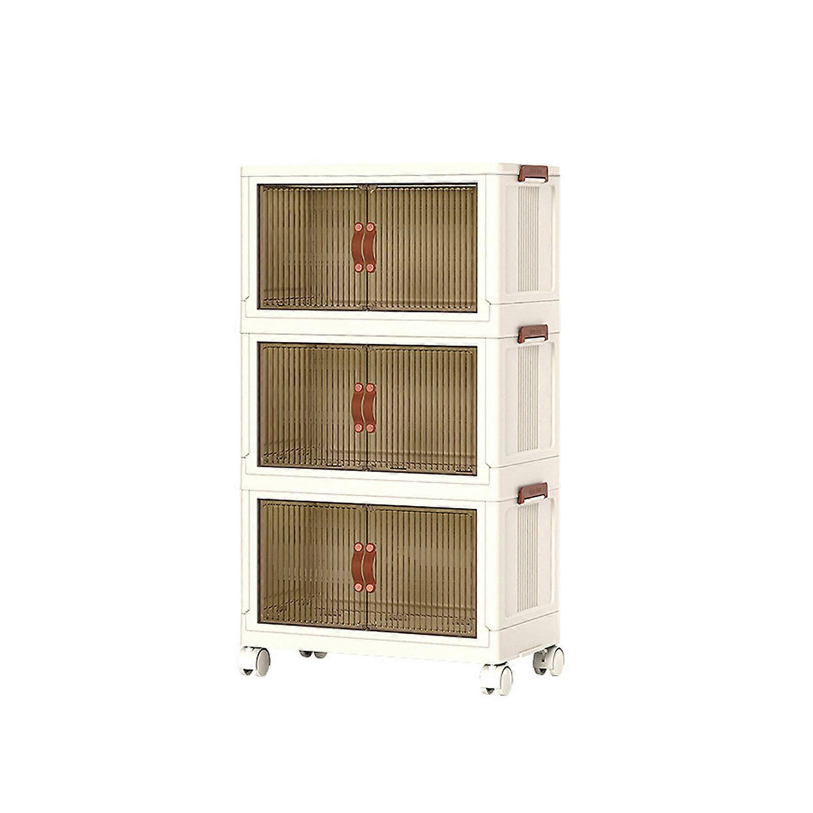 Storage Box with Lid, 41.6 L Plastic Storage Containers with Wheels, 3 Packs Stackable Boxes with Doors, Foldable Storage Containers