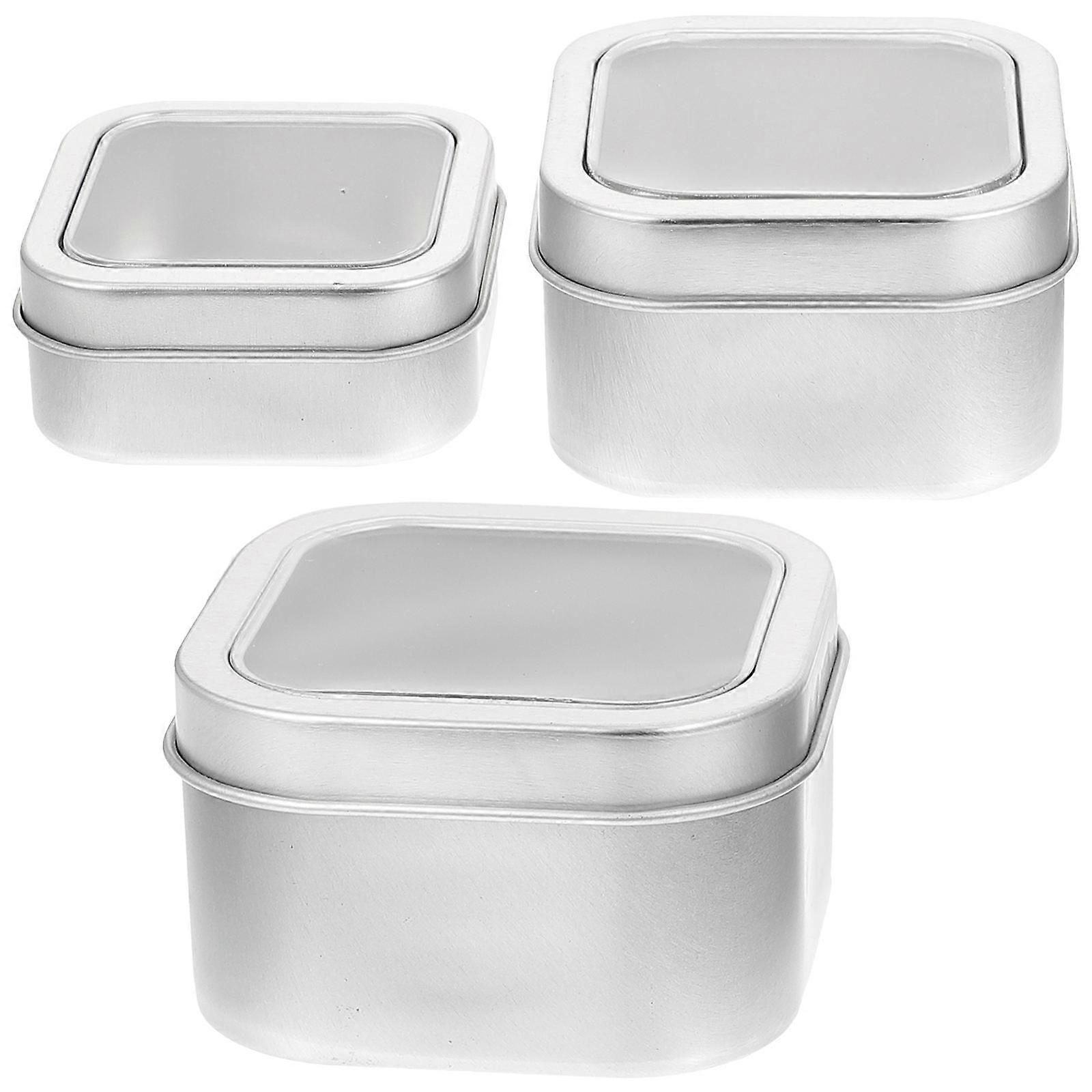 Storage Tins With Lids Retro Square Candle Aroma Tin Box present Giving Silver 7.5X7.5X5CM Storage 3Pcs