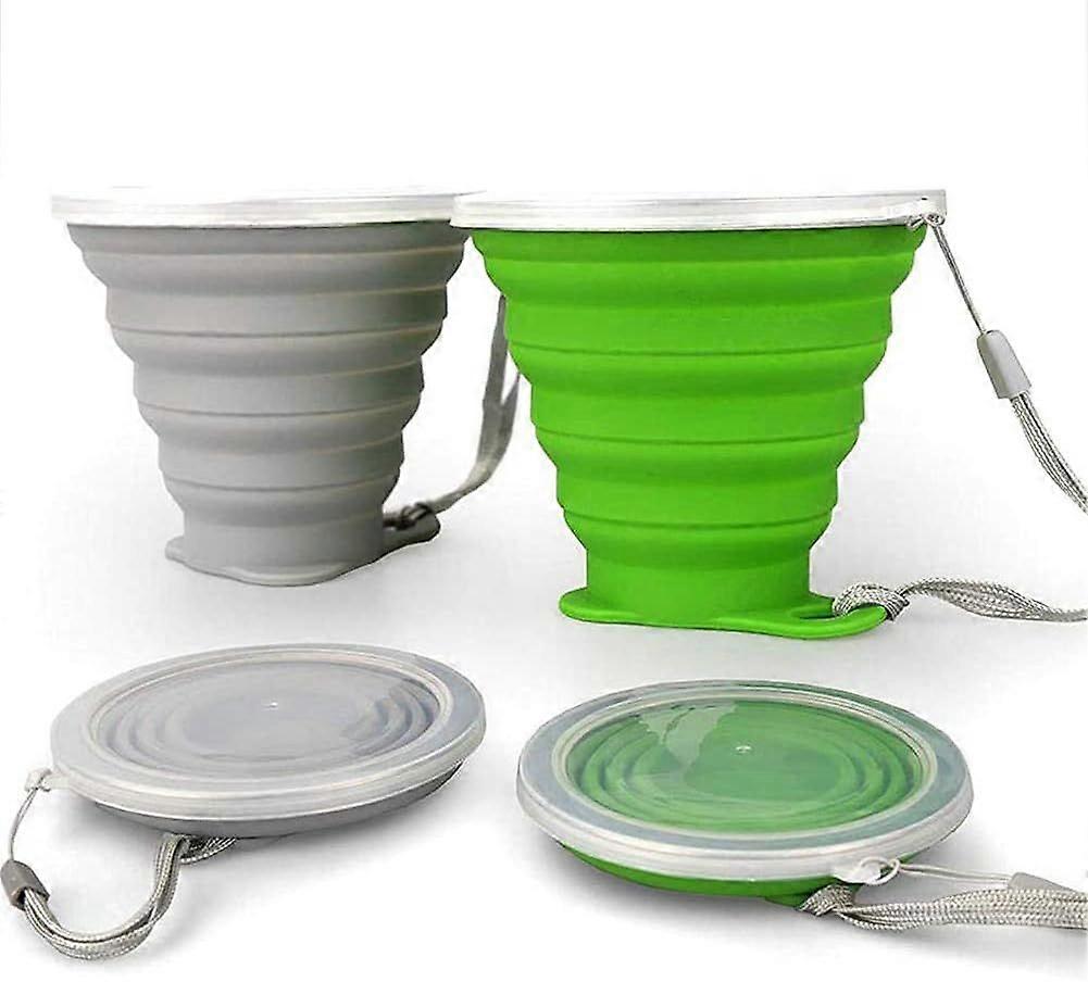 Foldable Silicone Mug with Lid - Portable Travel Cup for Outdoor, Camping, Hiking (2 Pack)