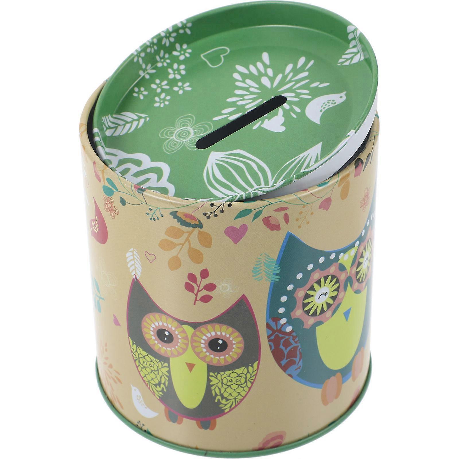 Cartoon Owl Tinplate Money Box with Lid – Round Desktop Coin Organizer & Decorative Piggy Bank for Boys, Sturdy Flat Base Cash Saving Jar
