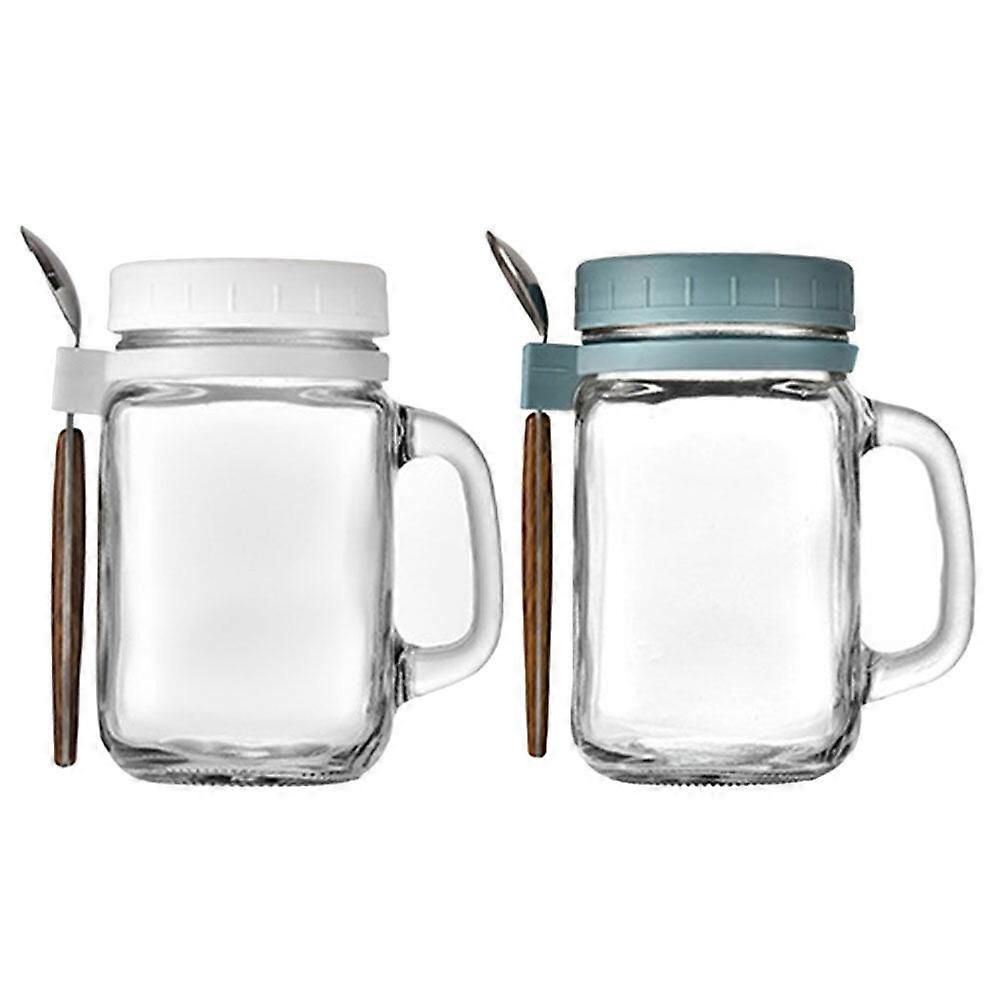 2 Sets Lidded Overnight Oatmeal Cup Breakfast Cereal Cup Glass Oats Cup with Spoon