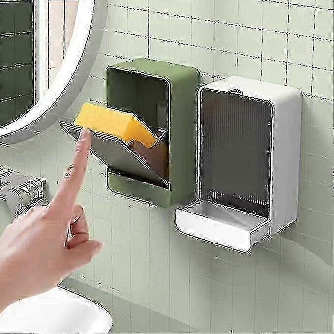 2pcs Soap Dish with Lid, Wall Mounted Soap Box, No Drilling Soap Holder, Removable Drain Tray for Sink, Shower, Bathroom, Kitchen White Green