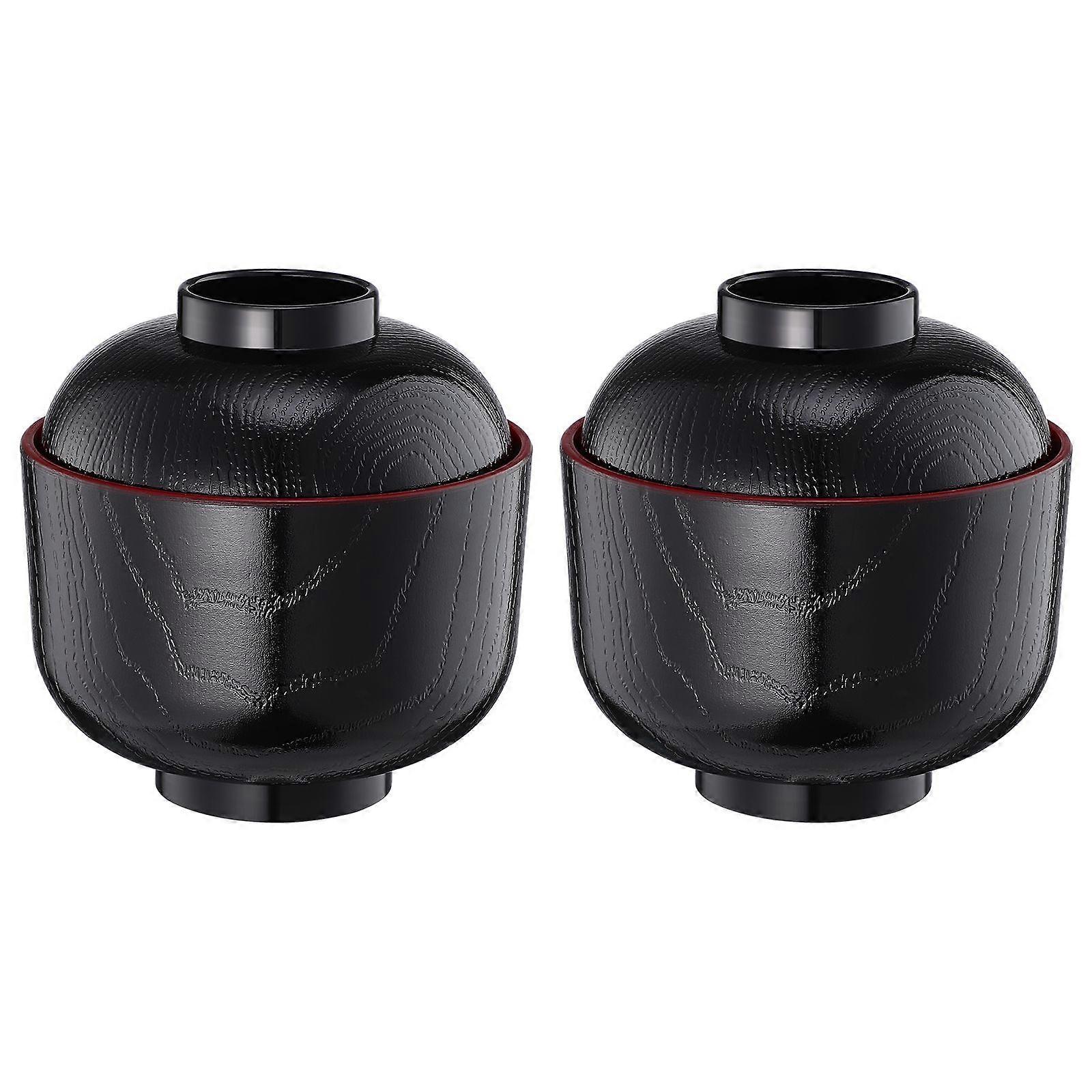 2Pcs Miso Soup Bowl with Lid Japanese Rice Bowl Traditional Miso Soup Bowl Cutlery Tableware