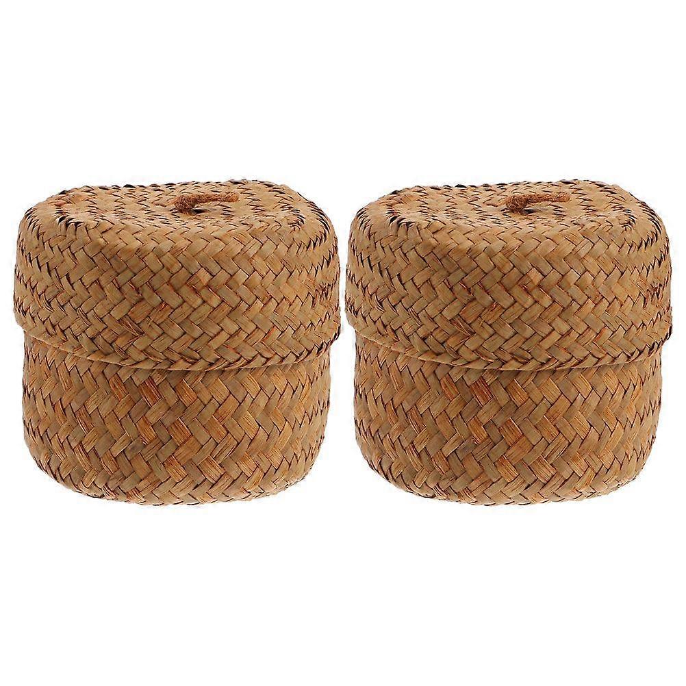 2pcs Seagrass Storage Baskets With Lid Rustic Woven Seagrass Desktop Basket Woven Gift Box