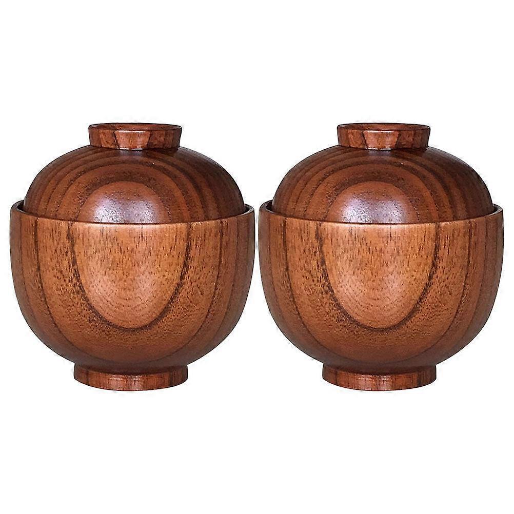 2Pcs Wooden Bowl with Lid Soup Bowl Rice Bowl Serving Bowl Wood Tableware