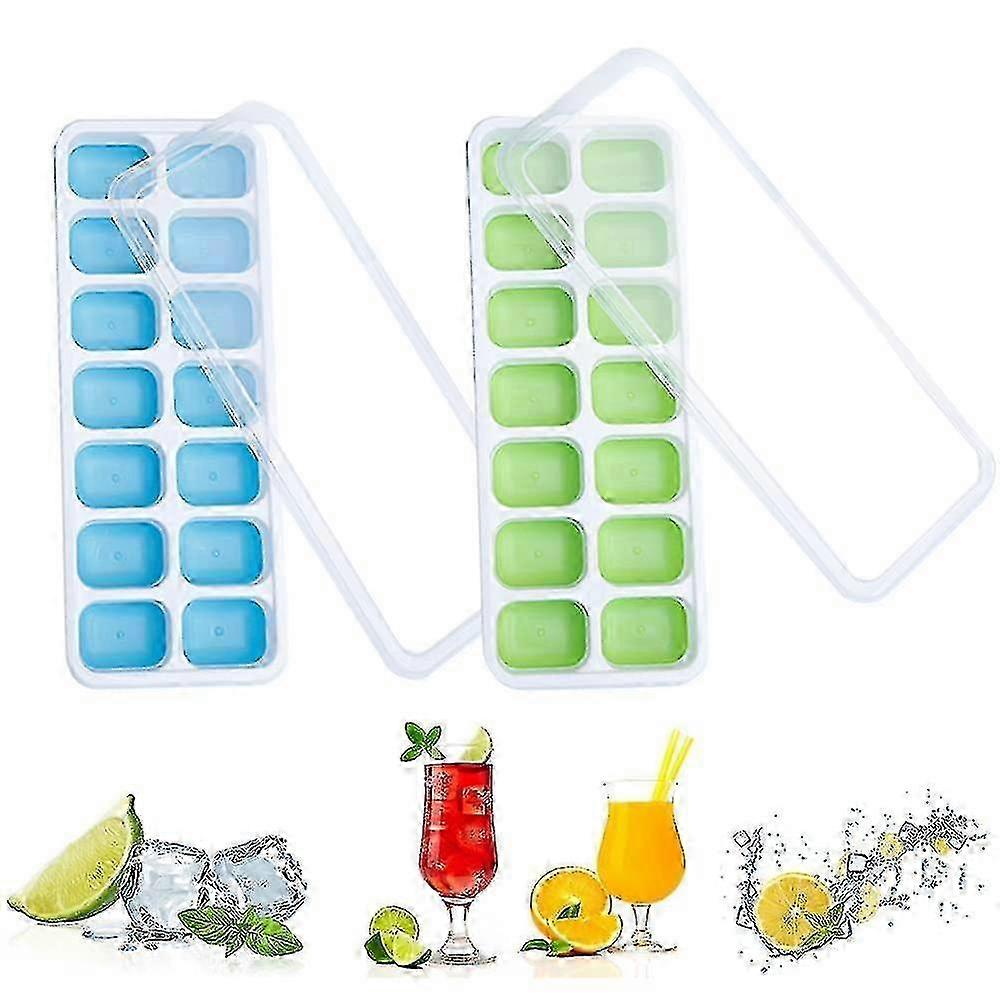 2pcs Silicone Ice Cube Trays with Lids - Flexible Spill-Proof Ice Molds for Easy Release & Storage in Freezer
