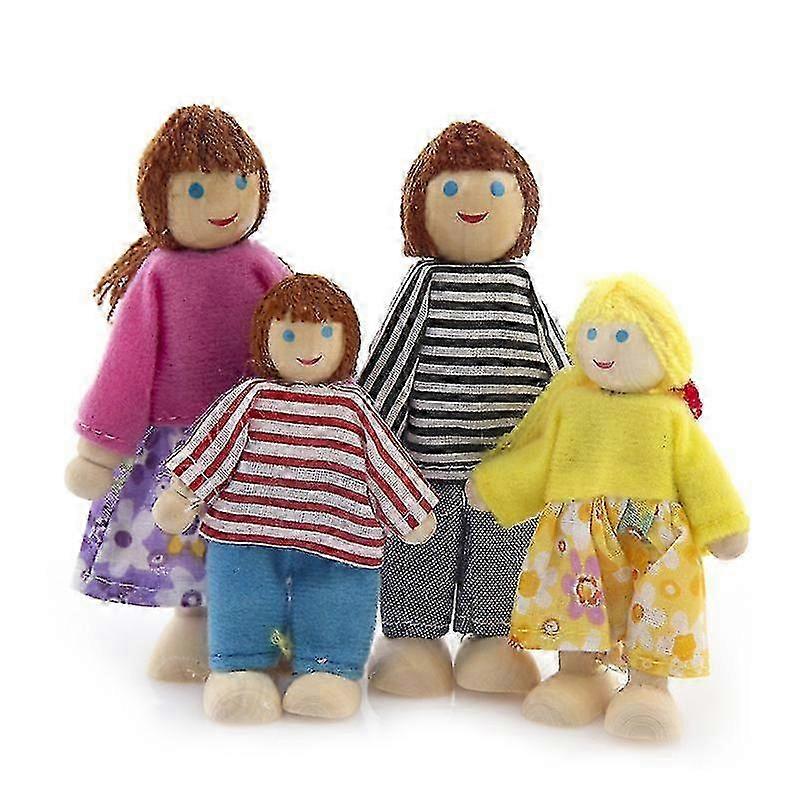 Pretend Play Mini House Dolls Family Wooden 3 Generations Doll Gift Toy Set for Kid