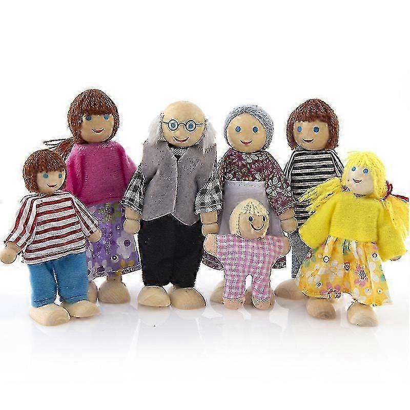 Pretend Play Mini House Dolls Family Wooden 3 Generations Doll Gift Toy Set for Kid