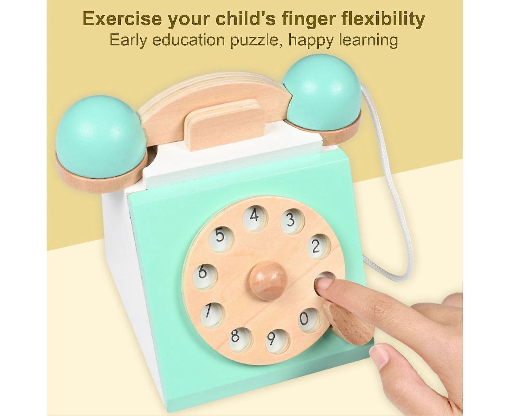 Pretend Play Phone Vintage Interactive Wood Communication Skills Training Rotary Phone Toy for Children