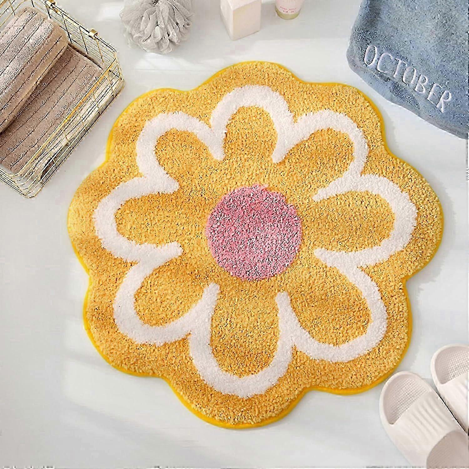 Fluffy Flower-Shaped Bath Mat, 40x40cm, Soft Microfiber Absorbent Non-Slip Bathroom Shower Mat, Yellow
