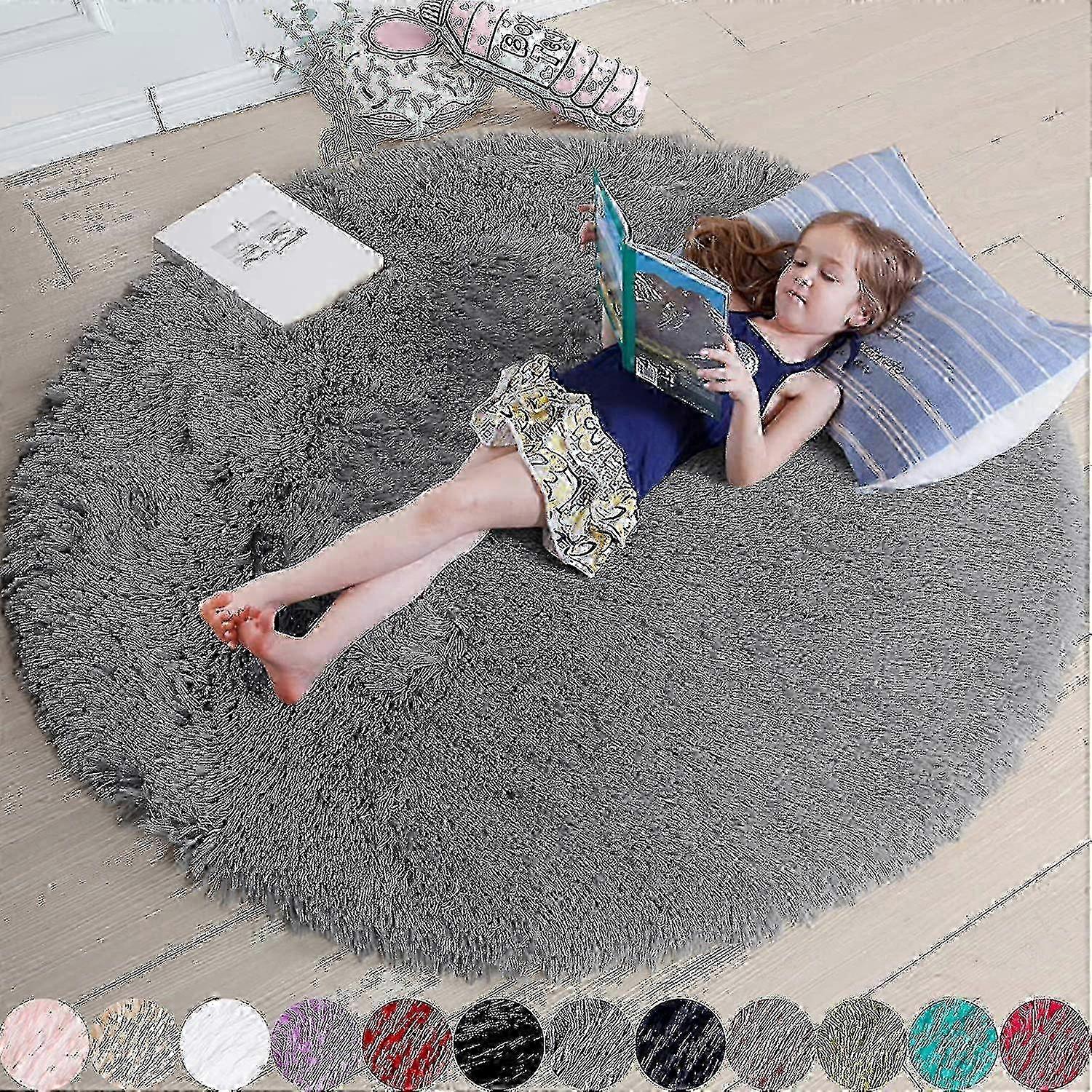 About this item Fluffy Rug with Rubber Backing--The biggest feature of this material is its amazingly soft touch especially when you walk on it. This softness comes from a thousands of 1.7" plush fibers. Besides,we also features a rubber backing to keep it stay in place. Perfect for Kid's Room: Do you have a little one who is fond of playing on the floor? If so, This is a "must buy" for your kids Its vivid color and furry appearance are perfect to enhance a kid's room. Meanwhile, our plush rug also offers warmth and comfort between kids and the cold floor during their happy time How to Clean: We suggest you vacuum or wipe it. When cleaning is required,please hand wash and air-dry to make rug fluffy and a long service life. After the rug is air-dried, its better if you fluff it. Not machine washable. Attention: Since this rug comes with a vacuum Packaging bag, its normal to see the fibers on the rug is not fluffy enough and there will be some creases. Please lay it flat for 2 to 3 days and wait patiently for its recovery. We are sorry for any inconvenience. Upgraded fluffy round rugs: cute circular carpet for girls kids dedroom living room. 1. After investigating customers' preference for carpet styles, our rugs have been improved and launched a more lovely round rugs series. 2. .Fluffy and soft round carpets come in many colors, which can create a warm and comfortable feeling for your private space. Comfortable throughout the year: Fluffy carpet suitable for winter and summer. . Our carpet is made of superfine fiber, so it is very soft and fluffy. In summer, carpets can be used in air-conditioned rooms, and in winter, carpets can be used on the floor. Warm in winter and cool in summer, , very suitable for use in the living room and bedroom. 2. Bright colors make it very suitable for any room, such as living room, bedroom, room, dining room or people gathering space, children's room and game room, or bedroom, study and other private rooms. Create a more comfortable home environment. Anti-slip design carpet 1.There are high-density non-slip points on the back of the carpet to prevent slippage. 2.This shape greatly increases the friction between the carpet and the floor. 3.So this kind of non-slip carpet is especially suitable for families with children and pets 4.In addition, the back is non-woven fabric, which will not damage the floor of the room. Super soft and fluffy velvet material carpet 1. This soft and fluffy shag carpet is made of velvet, and the texture is silky smooth 2. Made of safe materials, very friendly to pets and children's skin Machine washable carpet, convenient to keep the carpet clean.This is a kind of carpet that can be washed in a washing machine at home. *Please use a laundry bag with mesh to wash in the washing machine. Dust-proof vacuum packaging design Note The colors in the photos may differ from the actual color depending on the monitor setting. Since this rug comes with a vacuum packaging bag, its normal to see the fibers on the rug is not fluffy enough and there will be some creases at the first time. Please lay it flat for 2 to 3 days and wait patiently for its recovery. We are sorry for any inconvenience.<br>